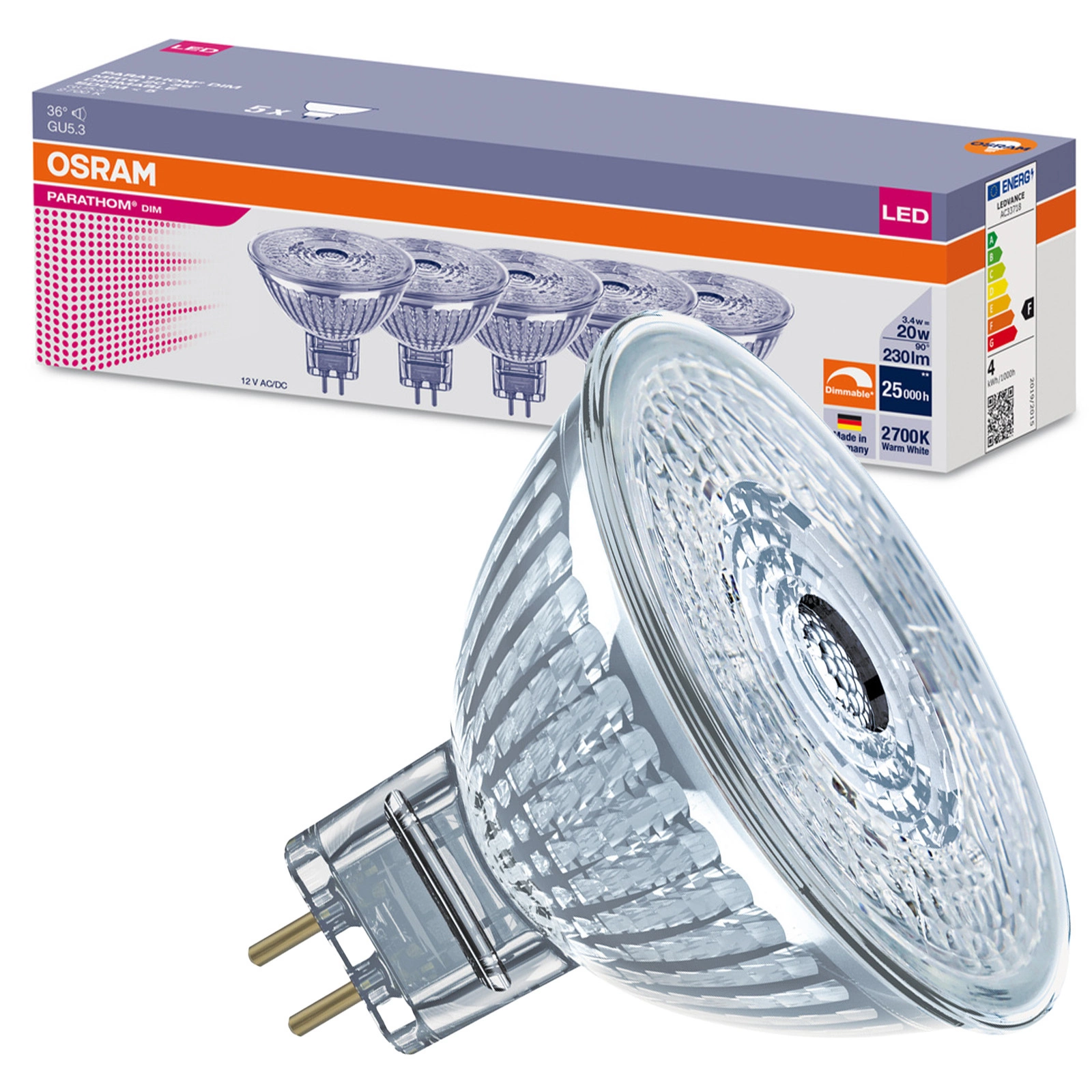 Entdecken Sie die außergewöhnliche Lichtqualität der PARATHOM DIM-Serie von Osram. Mit einer Nennleistung von 3,4W sind die MR16 LED-Lampen ein moderner Ersatz für herkömmliche 20W Glühbirnen. Mit einer Lichtleistung von 230 Lumen in warmweißer Farbe(2700K) sorgen sie für eine gemütliche Atmosphäre in jedem Raum. Dank ihres Lichtabstrahlungswinkels von 36° sind diese Lampen ideal für die Akzentbeleuchtung.