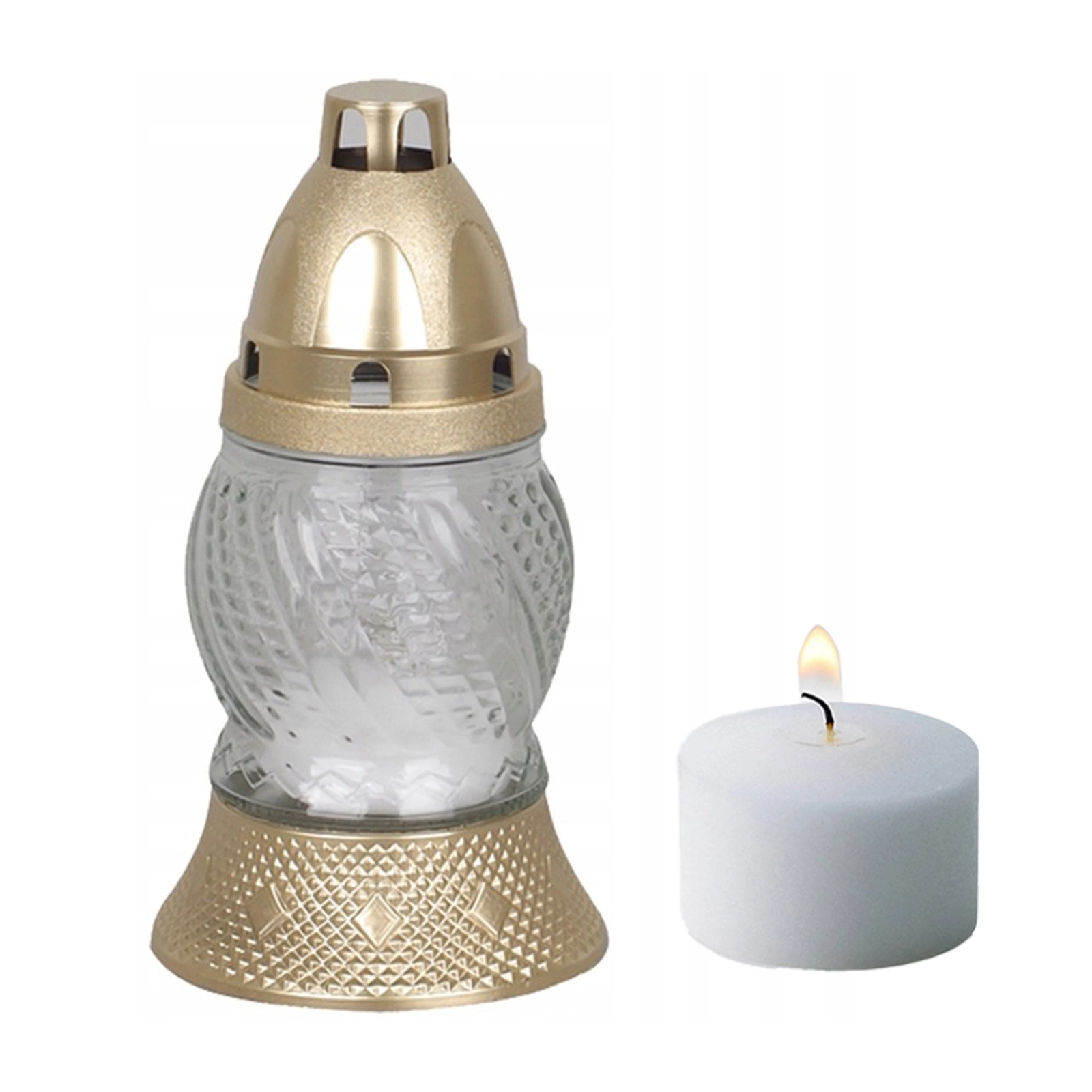 Klassisch glaskerze mit paraffin der Brenndauer 8h. Produkt von höchster Qualität, entspricht den Sicherheitsnormen und raucht nicht beim Verbrennen. Die Kerzen sind ideal als dekoratives Element auf Grabsteinen und als Symbol des Gedenkens an Allerheiligen.