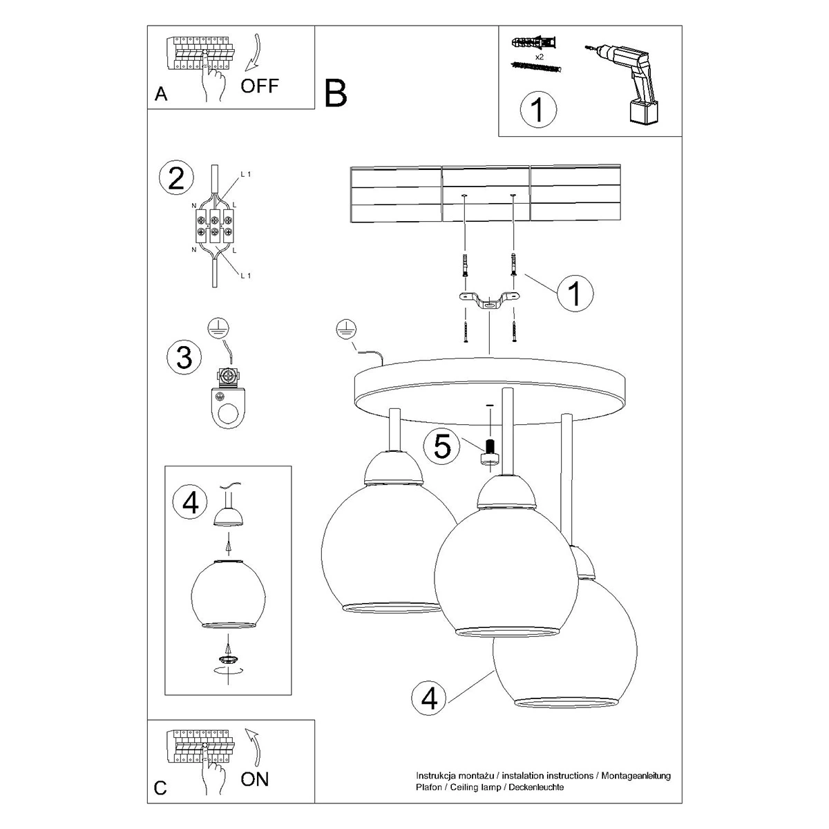 Entdecken Sie modernes Design mit der Deckenleuchte Alino Sollux plafond, die Eleganz und Funktionalität vereint. Vier kugelförmige Schirme in Schwarz bilden eine beeindruckende Komposition, die sich perfekt in jedes Interieur einfügen wird. Die Leuchte ist für drei Glühbirnen des Typs E27 ausgelegt, so dass Sie die Beleuchtung je nach Bedarf variieren können.