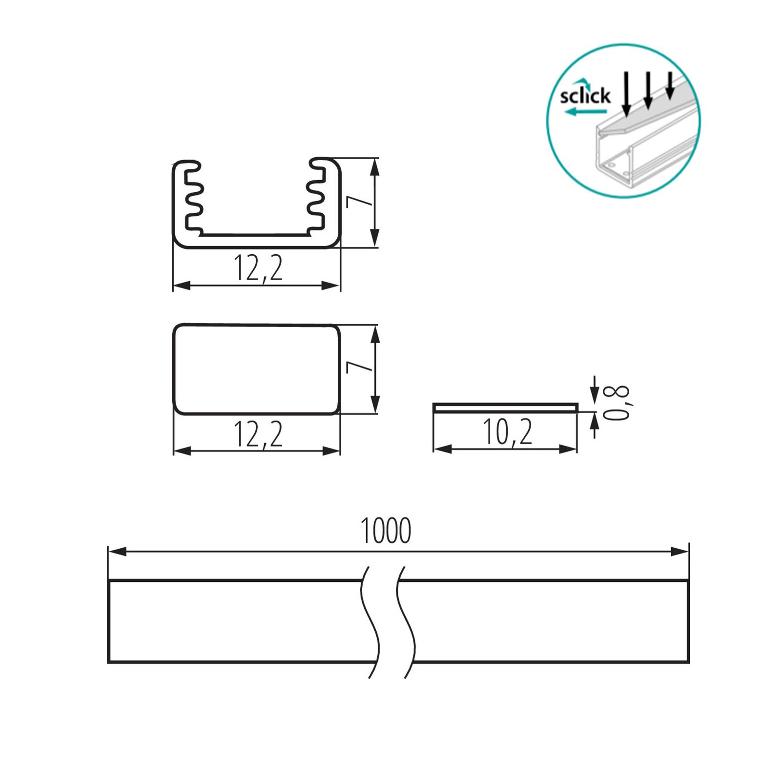 Aluminium-Aufbauprofil PROFILO B 1m Silber mit mattierter Blende und Endkappen KANLUX