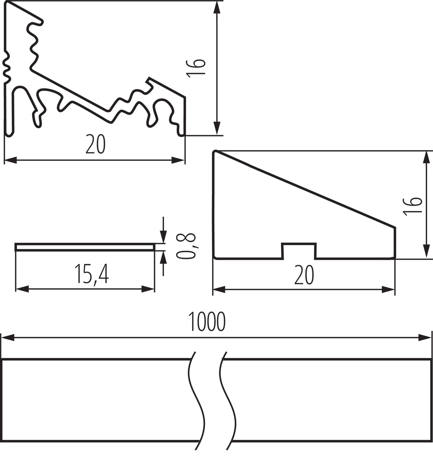 Aluminium-Eckaufsatzprofil PROFILO C 1m Silber mit mattiertem Schirm und Endkappen KANLUX