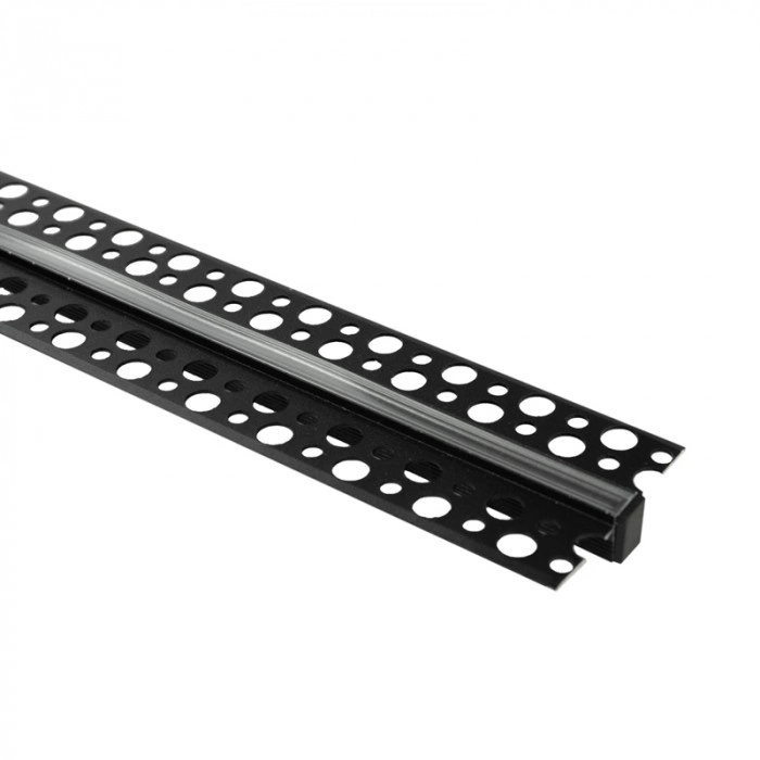 Aluminium LED-Profil für Gipskarton REGIPS Unterputz Schwarz 1m mit transparentem Diffusor für LED-Streifen + Kappen Ecolight GPW Serie