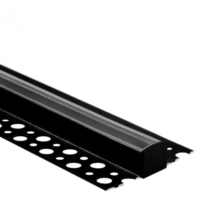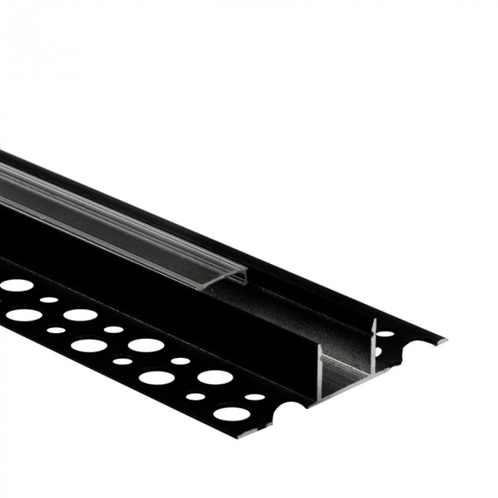Aluminium LED-Profil für Gipskartonplatten REGIPS Fliesenunterprofil Schwarz 1m mit transparentem Diffusor für LED-Streifen + Endkappen GN Ecolight Serie
