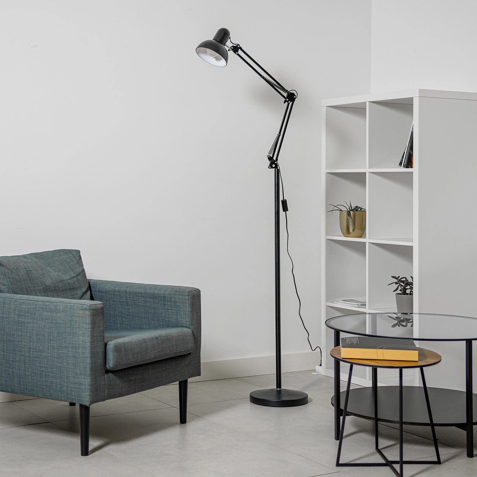 Diese elegante Stehleuchte ist die perfekte kombination aus Stil und Funktionalität, ideal geeignet für moderne Innenräume. Ausgestattet mit universal E27 Gewinde, bietet völlige Freiheit bei der Wahl der Glühbirne, die farbe und Leistung des Lichts können auf individuelle Vorlieben und den Charakter des Raums abgestimmt werden. Seine robuste Konstruktion garantiert Stabilität, während sein minimalistisches Design sowohl in klassische als auch in moderne Umgebungen passt. Die Lampe ist nicht nur eine praktische Lichtquelle, sondern auch ein auffälliges dekoratives Element.