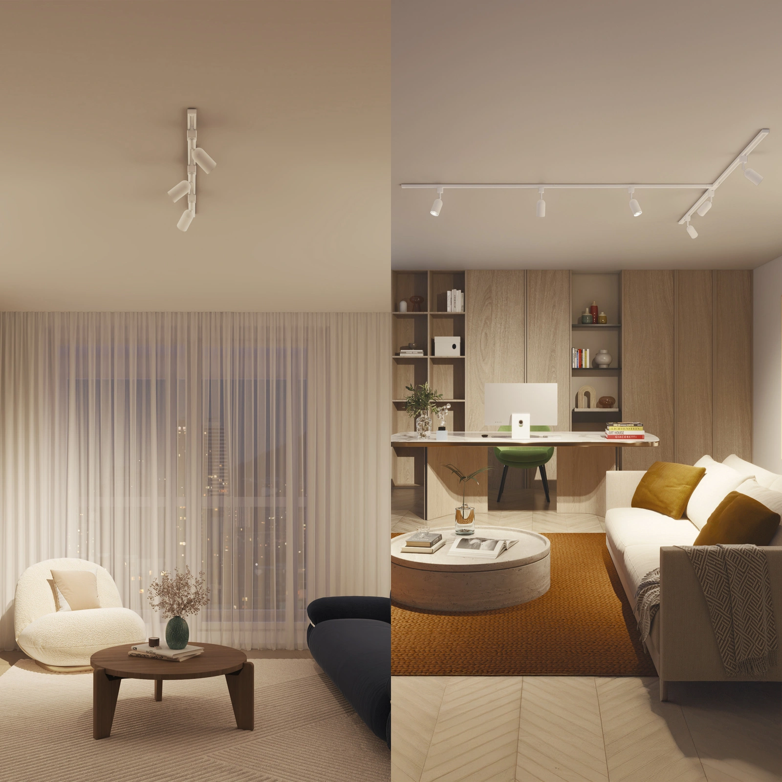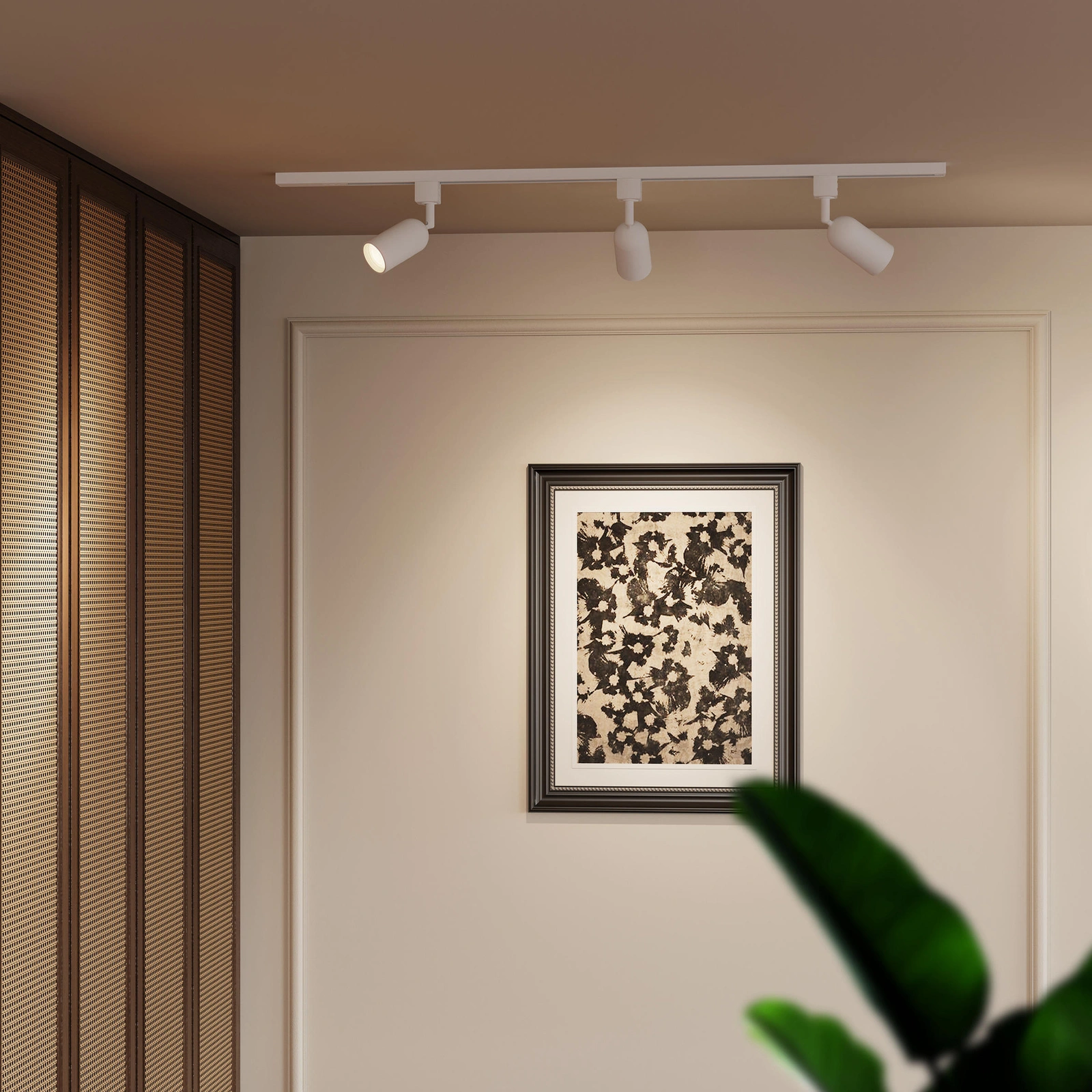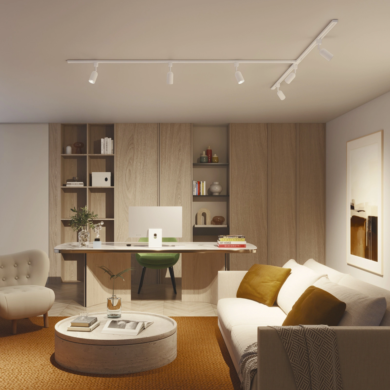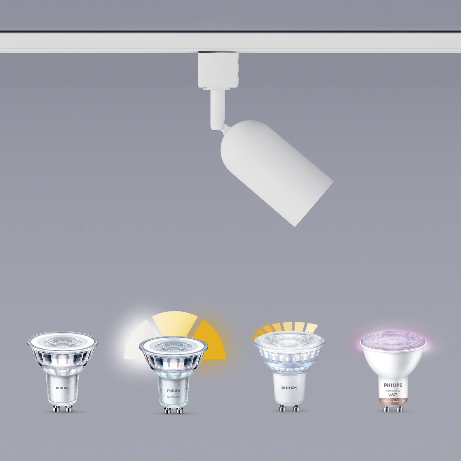 Mit dem Schienensystem haben Sie die volle Kontrolle über Ihre Beleuchtung und können sie genau auf den Lebensstil in Ihrem Zuhause abstimmen. Es funktioniert mit einer breiten Palette von Standard- und intelligenten Glühbirnen sowie Strahlern mit GU10-Sockel und gibt Ihnen die Freiheit, genau das Licht zu wählen, das Sie brauchen. Die Möglichkeit, dimmbare Lichtquellen mit Fernbedienung zu verwenden, erlaubt es Ihnen, die Atmosphäre Ihres Interieurs ganz einfach zu gestalten, während Lampen mit Farbtemperatursteuerung einen nahtlosen Übergang von kühlem, anregendem Weiß zu warmem, entspannendem Licht ermöglichen. Mit dieser Lösung können Sie den Charakter eines Raumes mit einer einzigen Bewegung verändern und die Beleuchtung an jeden Moment des Tages anpassen.