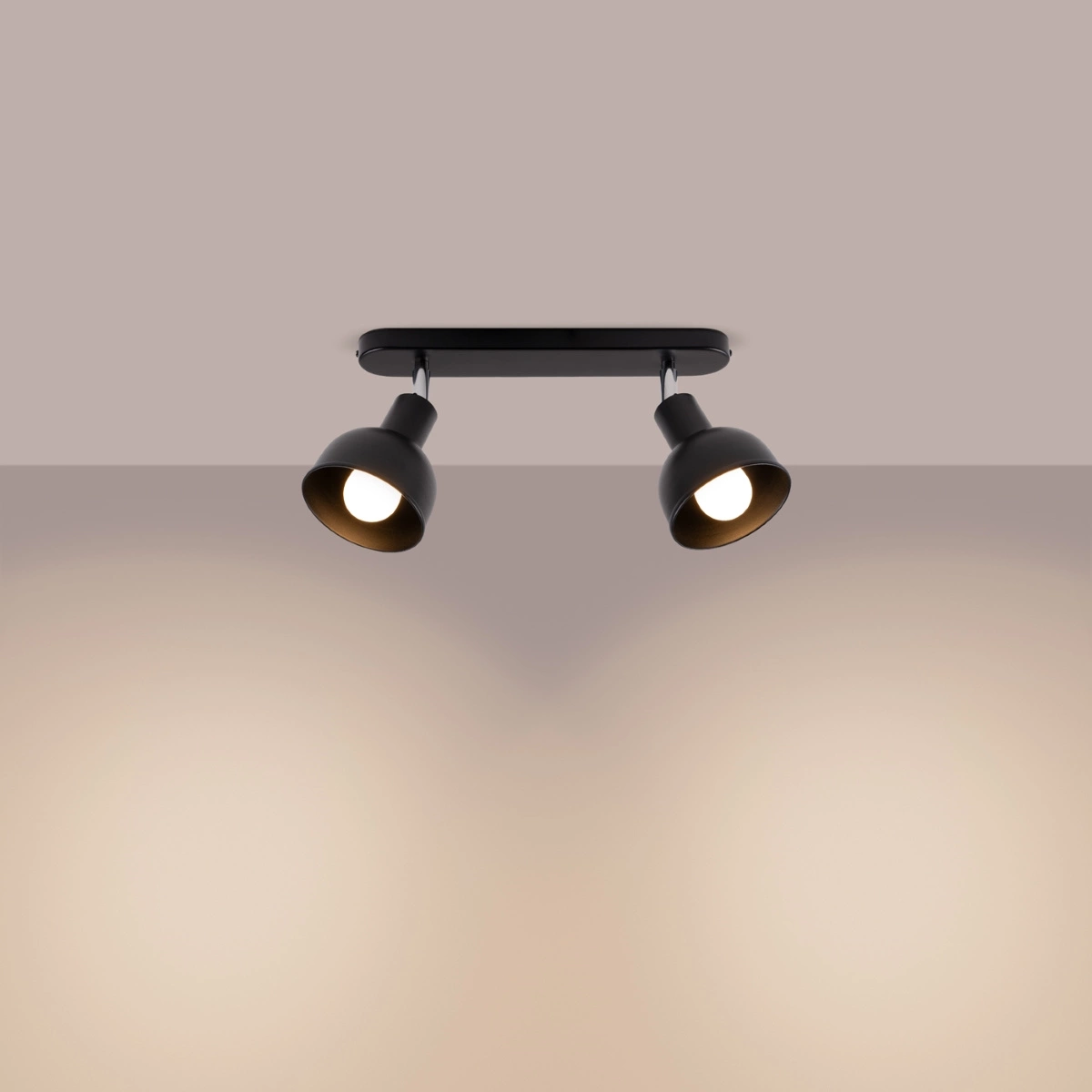 Entdecken Sie industriellen Charme und modernes Design mit der Deckenleuchte Elba. Diese schwarze geometrische Anbauleuchte mit beweglichem Design bietet die Möglichkeit, die Richtung des Lichts zu personalisieren, so dass Sie in jedem Raum eine individuelle Atmosphäre schaffen können. Ausgestattet mit zwei E27-Leuchtmitteln ist die Leuchte ideal für Räume, die eine starke und effektive Beleuchtung benötigen.