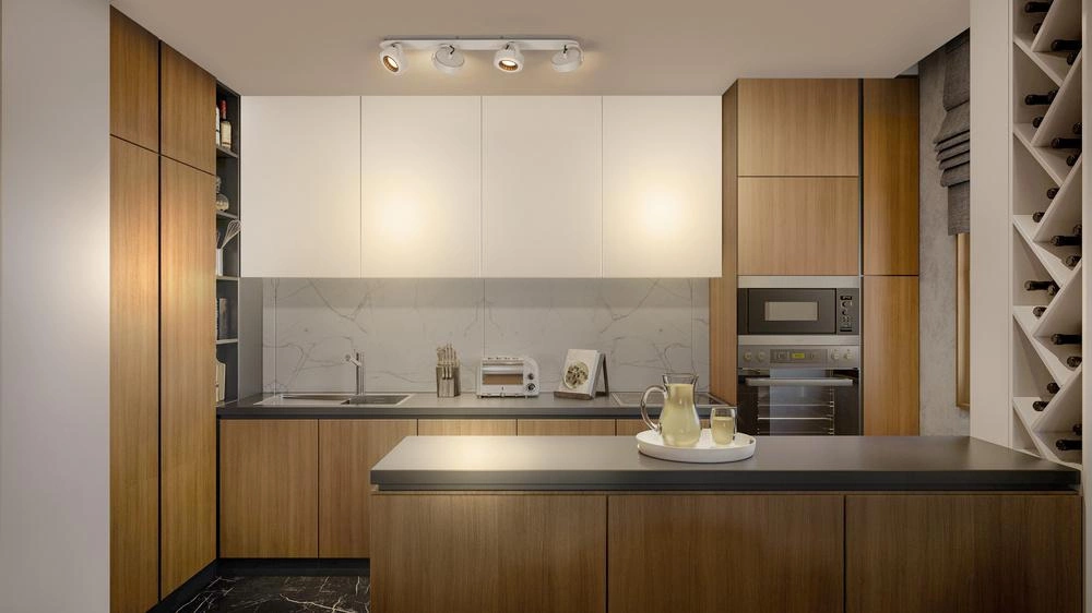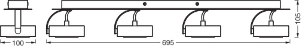 - Die Leuchtenfamilie umfasst vier Versionen mit bis zu 4 Spotköpfen.
