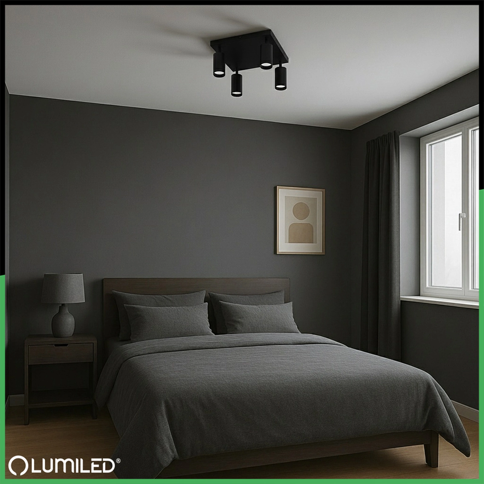 Die Deckenleuchte Plafond mit modernem und minimalistischem Design ist die perfekte Lösung für jede Art von Interieur. Der schwarz gefärbte Strahler ist mit vier Fassungen für eine GU10-Glühbirne ausgestattet, die sowohl die Verwendung von herkömmlichen als auch von energiesparenden LED-Lampen ermöglicht. Der verstellbare Lichteinfallswinkel ermöglicht eine präzise Ausleuchtung ausgewählter Punkte im Raum. Das schlichte Design und die dezente matte Oberfläche machen die Leuchte zu einer perfekten Ergänzung für moderne, skandinavische oder Loft-Stil-Einrichtungen. Sie eignet sich perfekt zur Akzentuierung von Bildern, Regalen oder Dekorationsgegenständen und kann auch als größeres Beleuchtungssystem dienen.