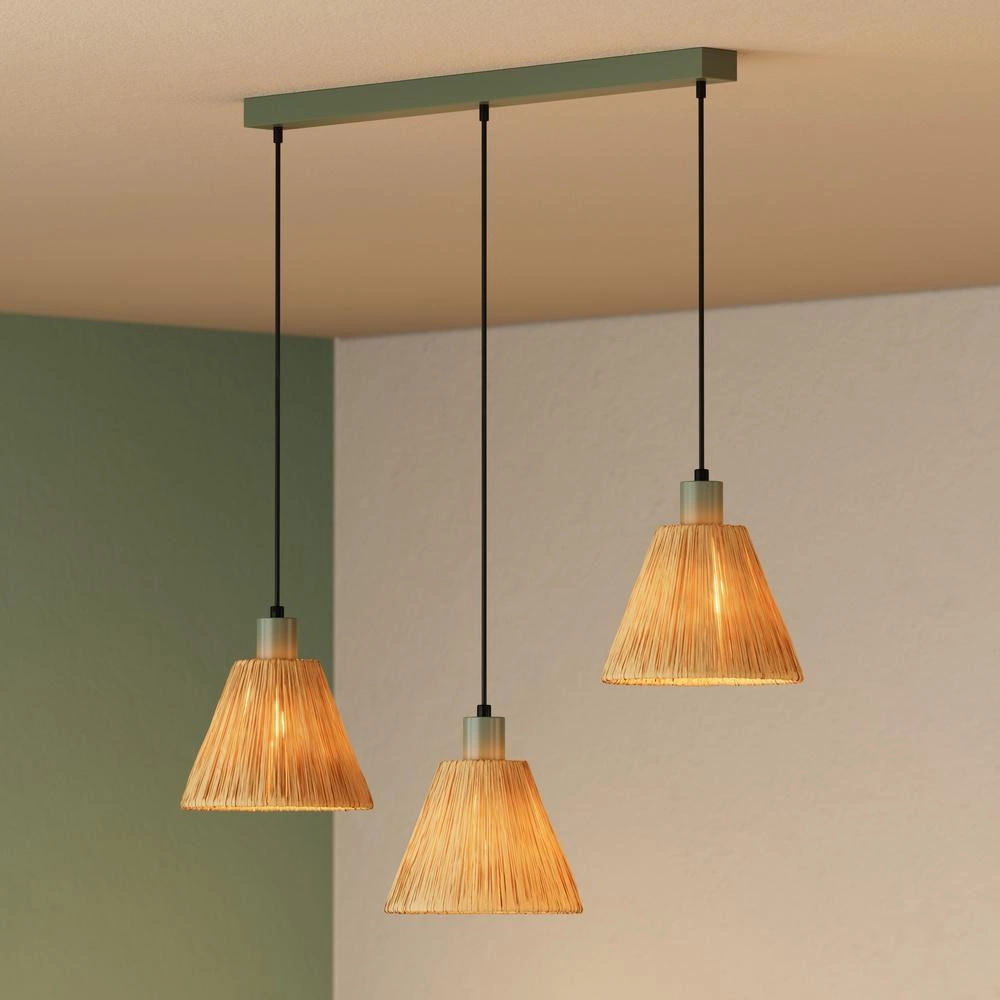 Wir stellen eine einzigartige Pendel-Deckenleuchte vor, die modernes Design mit Elementen der Natürlichkeit perfekt kombiniert. Sie ist aus hochwertigen Naturmaterialien und Stahl gefertigt und besticht durch ihre schönen Farben: Braun und Grün. Dank der hängenden Montage wird die Leuchte zu einer subtilen und ästhetischen Ergänzung für jedes Interieur.