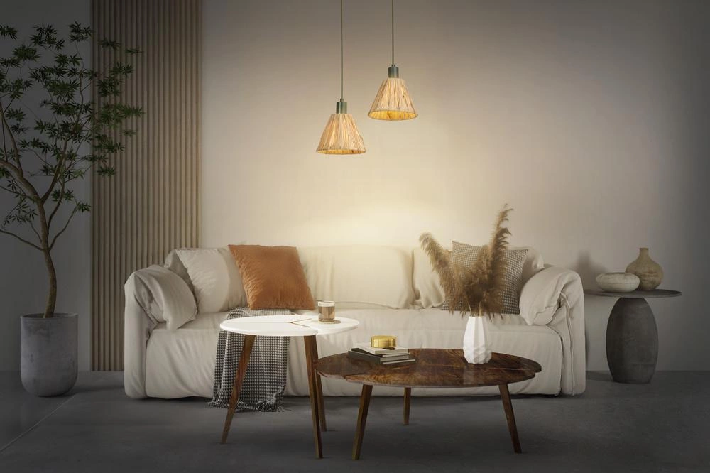 Dekorative Decke Pendelleuchte E27 Überhang Braun Grün Raffia Dekor Ledvance