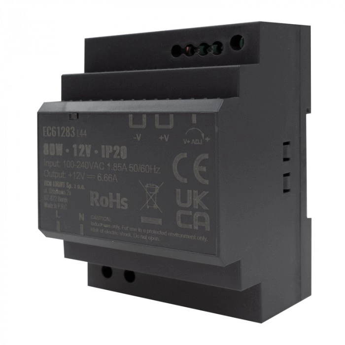 Entdecken Sie das 80W-Netzteil für die DIN-Schiene aus der PREMIUM-Linie von Ecolight, das perfekt auf die Bedürfnisse einer Vielzahl von Systemen abgestimmt ist, die eine 12V-Gleichstromversorgung benötigen. Dank seines stabilen 6,66A Ausgangs und der Verwendung von Polyvinylchlorid garantiert das Netzteil nicht nur Zuverlässigkeit, sondern auch eine lange Lebensdauer. Das kompakte Design erleichtert die Montage auf einer DIN-Schiene und macht es zur idealen Wahl für den Einbau in Schalttafeln, Automatisierungs-, Beleuchtungs- und Alarmsystemen.