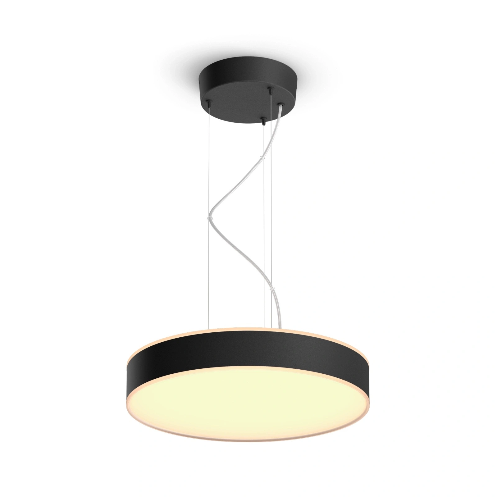 Hängelampe für die Decke HUE ENRAVE LED in der Beleuchtungsindustrie bekannt und respektiert Philips. Leuchte mit einer integrierten LED-Lichtquelle von 33,5W und sehr effiziente Lichtleistung - 4300lm, strahlt angenehmes und entspannendes Licht z einstellbare Farbtemperatur die von angenehm warm über neutral bis kalt reichen, mit denen wir für jede Gelegenheit eine passende Stimmung schaffen können. ENRAVE-Deckenleuchte fügt sich dank seines stilvollen Gehäuses nicht nur perfekt in die Einrichtung des Hauses ein, sondern bietet auch die Möglichkeit, das Licht nach unten und nach oben abzugeben, was eine funktionelle Beleuchtung garantiert. Diese Lampe kann unabhängig oder als Teil eines intelligenten Beleuchtungssystems betrieben werden, indem sie mit einer Hue-Bridge verbunden wird. Einfaches Ein- und Ausschalten der Beleuchtung, Dimmen, Aufhellen und Auswählen verschiedener Lichtszenen.