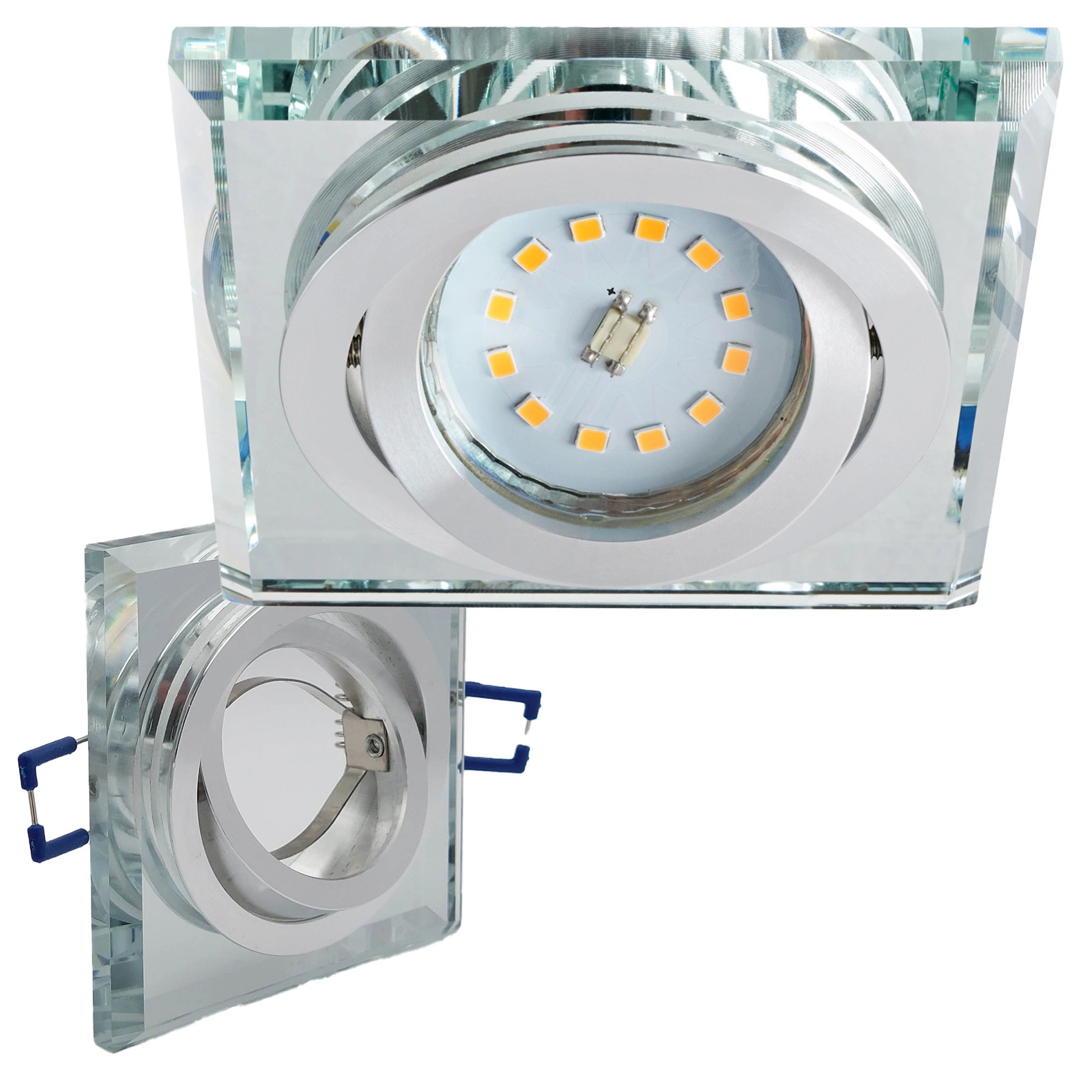 Unsere GU10-Einbauleuchte, Modell Halogen Recessed Spot Eyepiece in eleganter, transparenter quadratischer Form, ist die ideale Lösung für alle, die eine moderne und stilvolle Beleuchtung in ihrem Interieur wünschen. Die aus hochwertigen Materialien gefertigte Leuchte bietet nicht nur eine hervorragende Lichtausbeute, sondern auch ein ästhetisches Erscheinungsbild, das perfekt mit einer Vielzahl von Raumarrangements harmoniert, egal ob es sich um ein Büro, ein Wohnzimmer, einen Flur oder ein Esszimmer handelt.