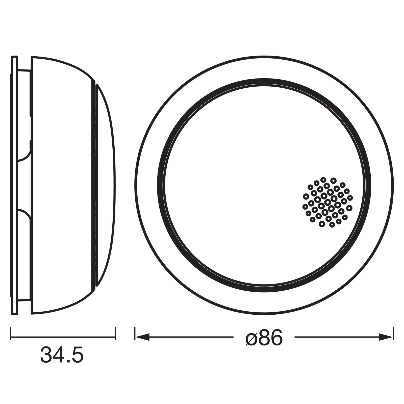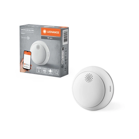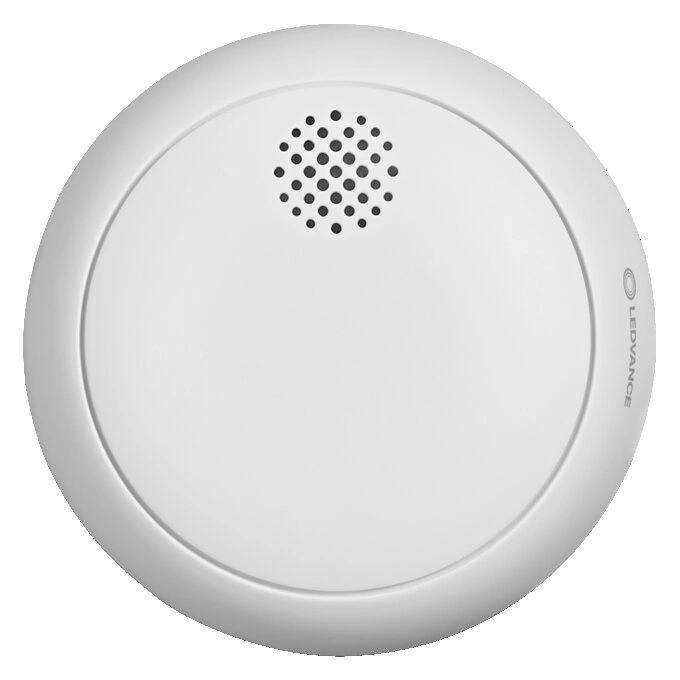 Der SMART+ Funk-Innenraum-Rauchmelder mit WiFi-Technologie von Ledvance benachrichtigt Sie schnell, wenn Rauch erkannt wird. Dieses kompakte Gerät mit einem Durchmesser von 8,6 cm ist batteriebetrieben und arbeitet mit Lithium-Batterien. Der Sensor aus strapazierfähigem Kunststoff wird über das WiFi-Protokoll angeschlossen und lässt sich leicht in Smart-Home-Systeme integrieren.
