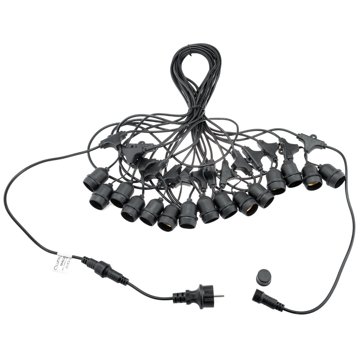 Die Materialien, die bei der Herstellung der Girlande verwendet wurden, gewährleisten die Widerstandsfähigkeit gegen das Eindringen von Staub und Feuchtigkeit, die IP44 ist. Jede Girlandenfassung ist mit einer robusten Dichtung versehen.
