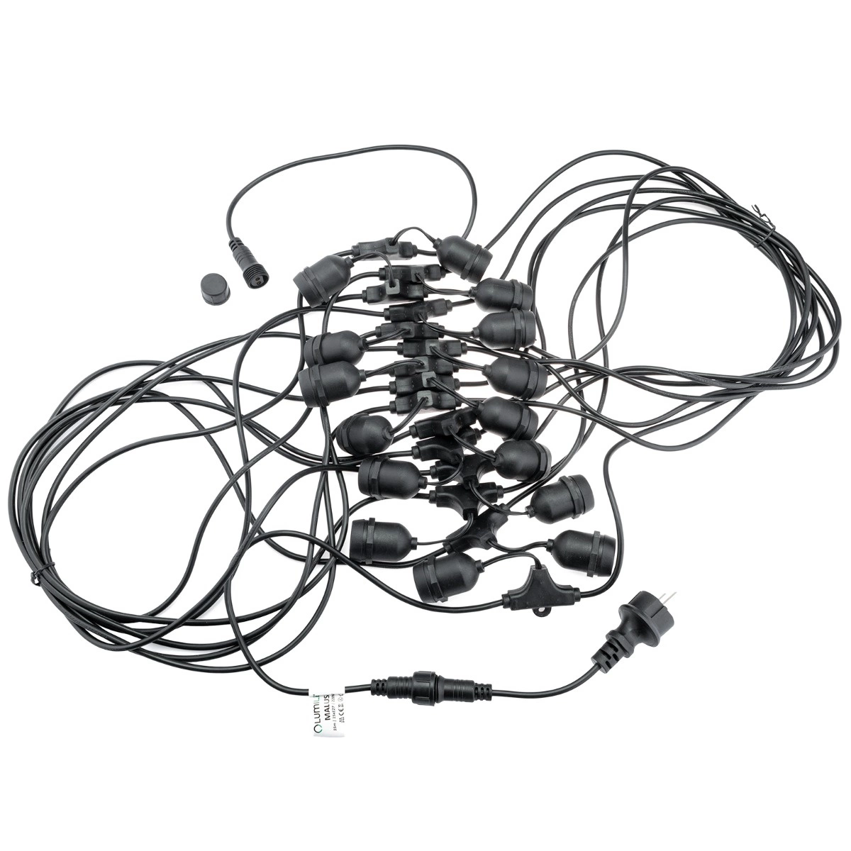 Die Materialien, die bei der Herstellung der Girlande verwendet wurden, gewährleisten die Widerstandsfähigkeit gegen das Eindringen von Staub und Feuchtigkeit, die IP44 ist. Jede Girlandenfassung ist mit einer robusten Dichtung versehen.