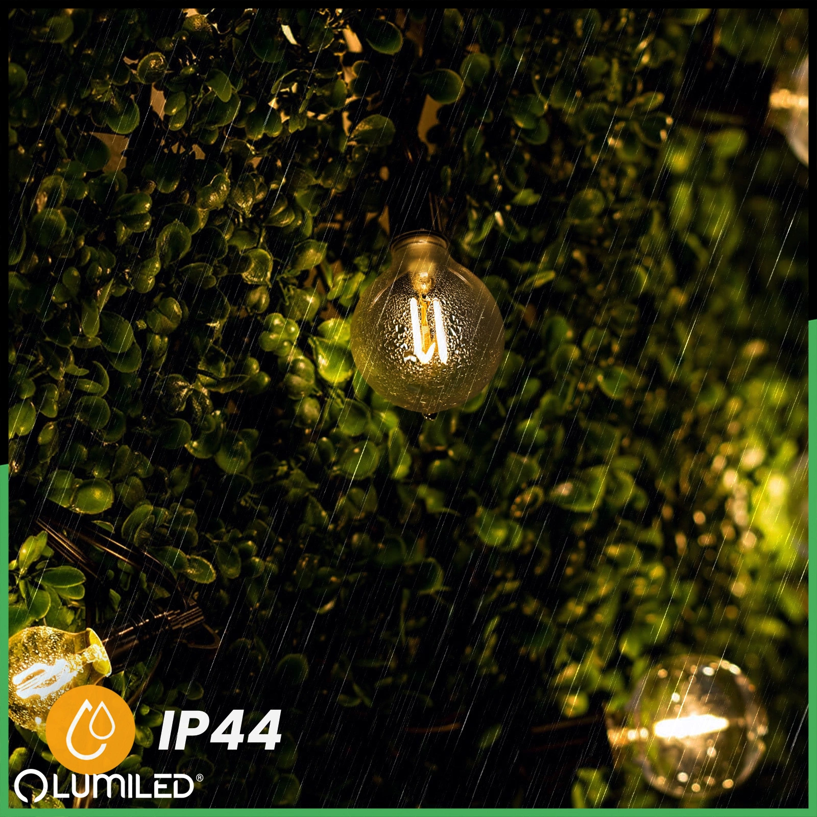 Die Girlande ist für einenlanglebigen und zuverlässigen Einsatz auch unter anspruchsvollen Außenbedingungen konzipiert. Die hohe Schutzart IP44 bietet wirksamen Schutz gegen Witterungseinflüsse wie Regen, Feuchtigkeit oder Staub. Dadurch ist es sowohl für den Außen- als auch für den Innenbereich geeignet. Die Kombination aus Ästhetik und Haltbarkeit sorgt für eine effektive und zuverlässige Beleuchtung über einen langen Zeitraum.