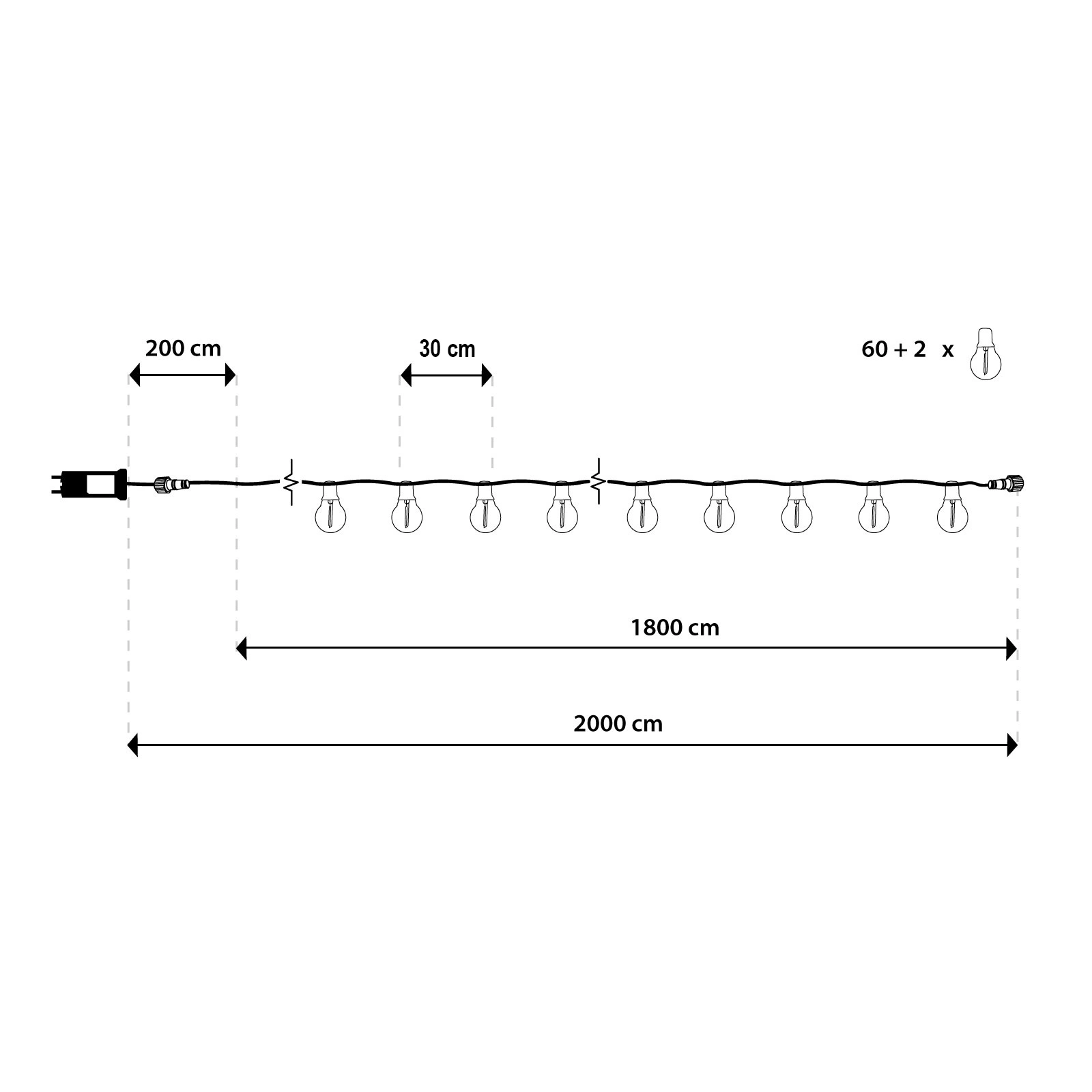Garten Girlande Outdoor-Lichterkette 20m 60x LED + 2 Glühbirnen 12W Warm 2700K DOLLIS2 LUMILED