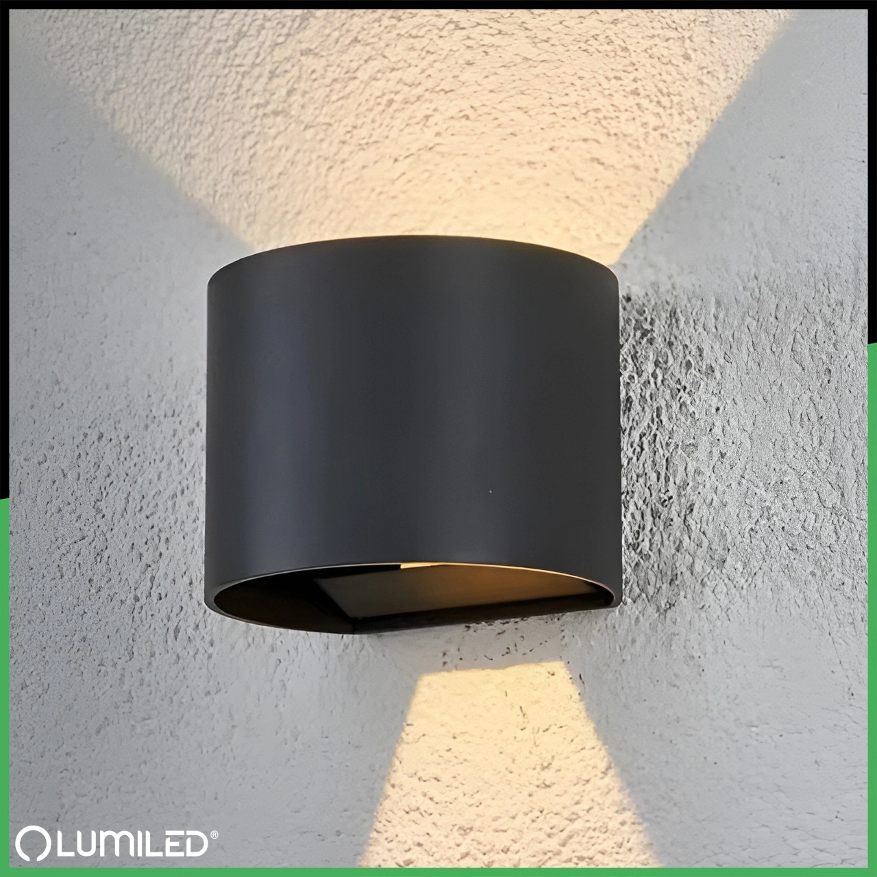 Diesemoderne, hochwertig verarbeitete Fassadenleuchte wurde für die elegante und funktionale Beleuchtung von Außenbereichen konzipiert. Das robuste Gehäuse in mattschwarzer Ausführung sorgt für Langlebigkeit und Witterungsbeständigkeit. Das Design der Leuchte erlaubt es, das Licht nach oben und unten zu richten, wodurch ein stilvoller Lichteffekt an der Wand entsteht. Dank ihres minimalistischen Designs und der sorgfältigen Verarbeitung fügt sich diese Wandleuchte perfekt in moderne architektonische Arrangements ein, unterstreicht den Charakter des Raums und verleiht ihm eine einzigartige Atmosphäre.