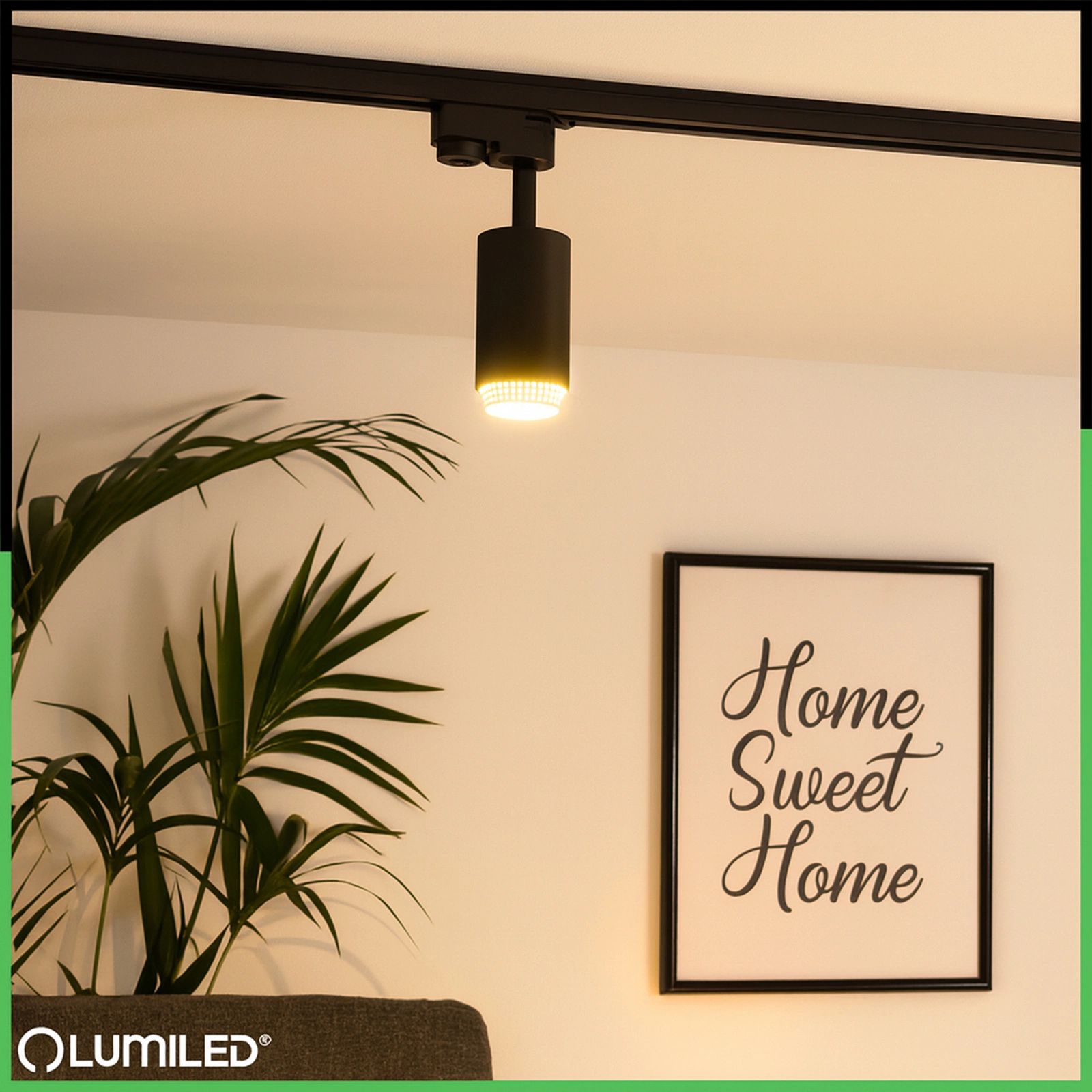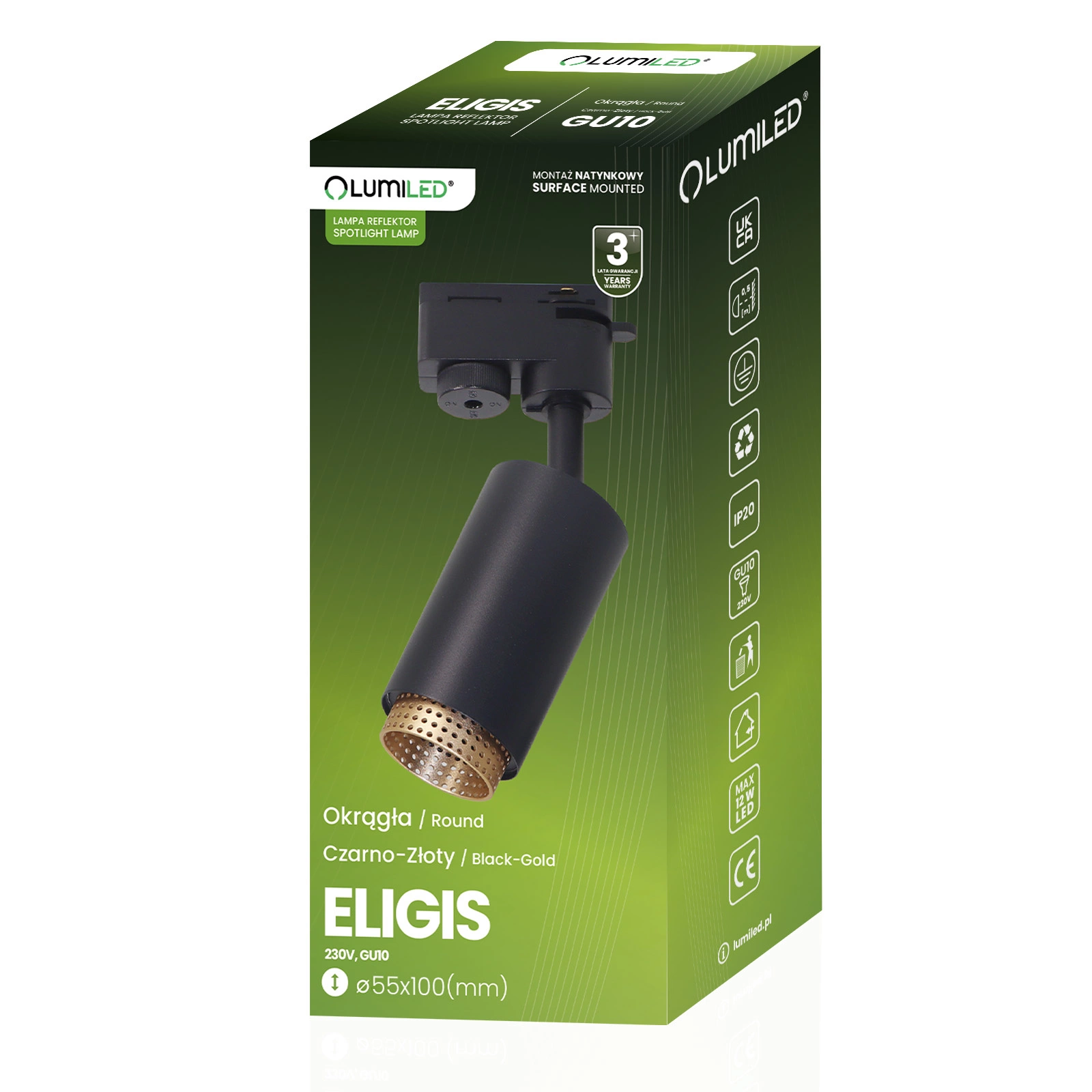 Eine Leuchte für die Montage in einem Schienensystem aus der ELIGIS-Serie von Lumiled in Schwarz und Gold ist eine elegante und funktionelle Lösung für moderne Innenräume. Es ist aus hochwertigem Aluminium gefertigt und verbindet Langlebigkeit mit einem ästhetischen Erscheinungsbild. Das vorgestellte Modell ist ausgestattet mit gU10-Glühlampenfassung, positioniert in stilvollem goldenen Lampenelement, was der Leuchte einen minimalistischen, aber raffinierten Charakter verleiht. Ein weiterer Vorteil der Leuchte ist die Möglichkeit, jede Glühbirne mit einem GU10-Gewinde mit einer maximalen Leistung von 12 W zu montieren.