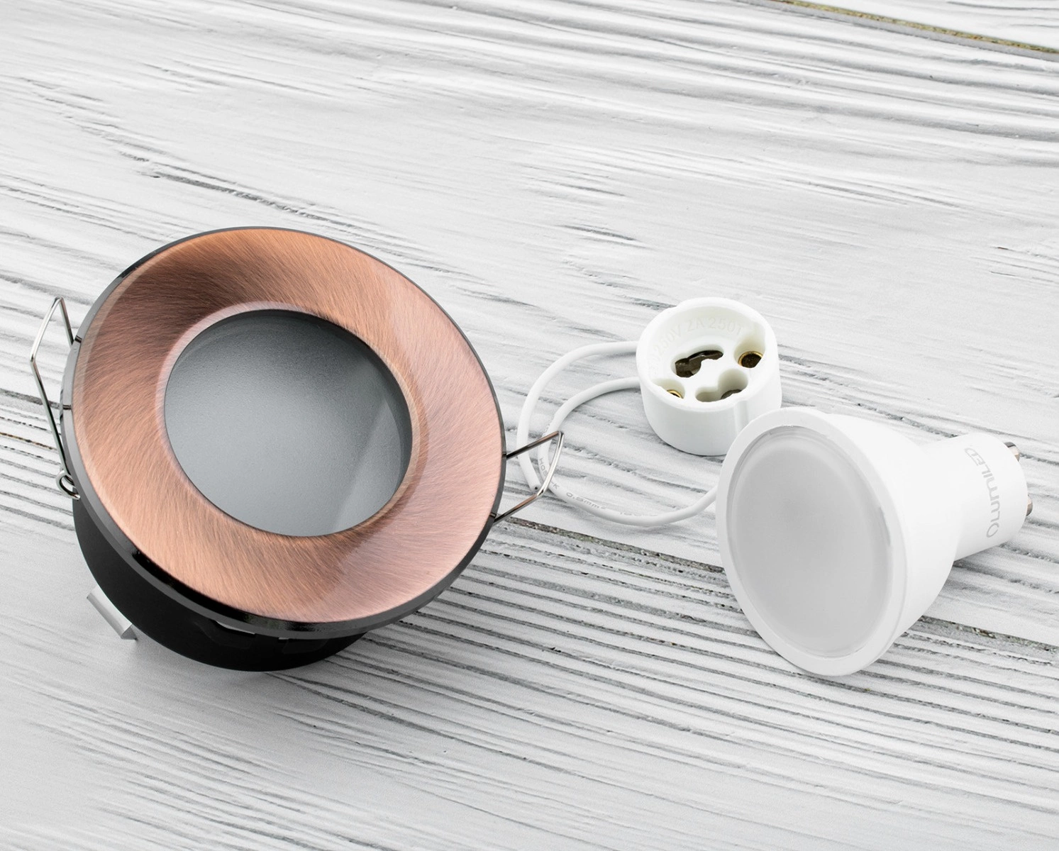Halogen-Hermetik-Badezimmerleuchte Kit AQUS Kupfer IP44 + LED GU10 1,5W 4000K Lumiled