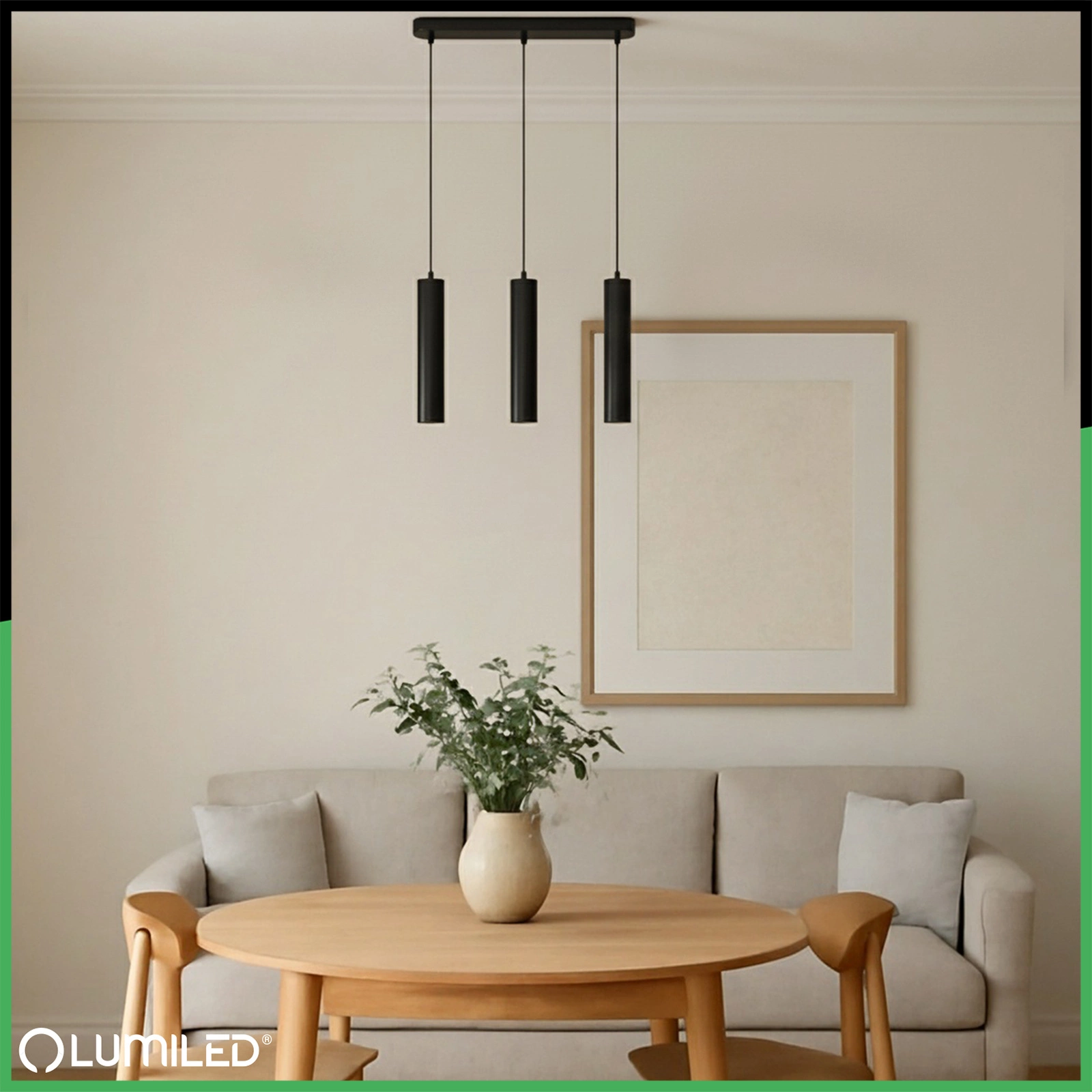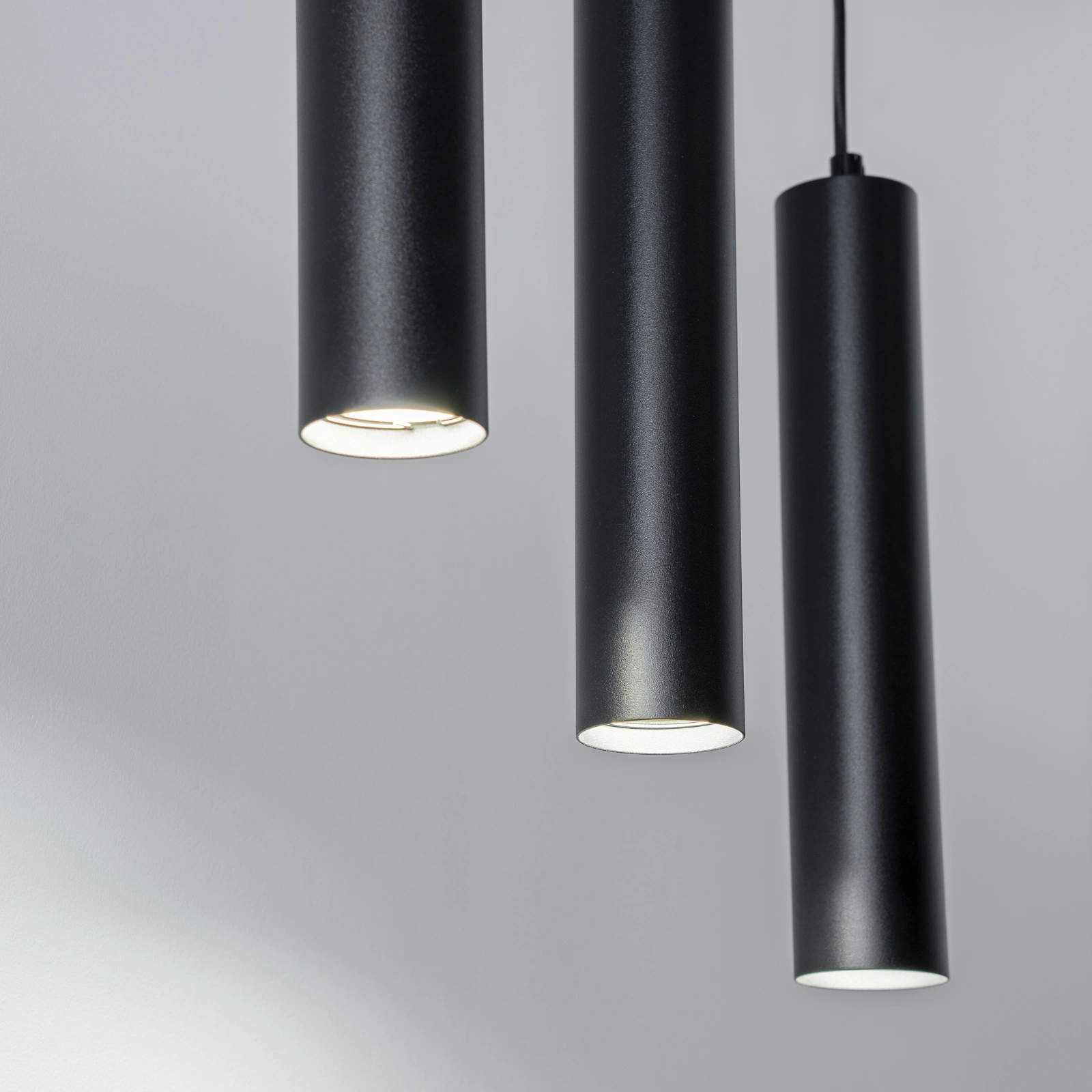 Die Leuchte wurde als auffällige Pendelleuchte konzipiert, die nicht nur durch ihr Design besticht, sondern auch durch ihre einfache Montage, die sich perfekt in jeden Raum einfügt. Der zylindrische Körper, der das Leuchtmittel beherbergt, verleiht der Leuchte einen modernen und diskreten Charakter, und ihr Überhang kann verstellt werden, so dass die Länge des Kabels an die jeweilige Inneneinrichtung angepasst werden kann. Dieses Modell ist ideal für den Einsatz in verschiedenen Räumen, z.B. in Wohn-, Flur- oder Schlafzimmern, aber auch in gewerblichen Bereichen wie Schaufenstern und Büros.