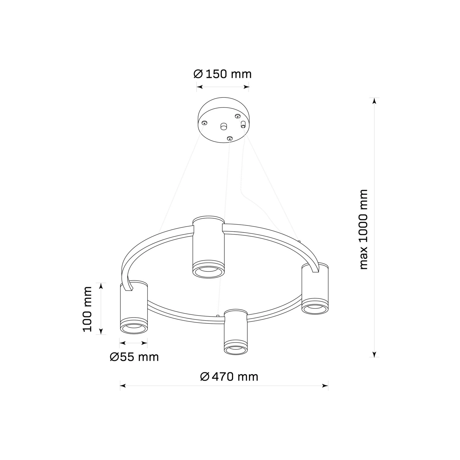 Beleben Sie Ihre Innenräume mit Eleganz und Modernität mit der Deckenleuchte PARIS von Sanico Goldlux. Diese einzigartige Pendelleuchte mit vier Lichtpunkten an einem GU10-Stiel besticht nicht nur durch ihr minimalistisches Design, sondern auch durch ihre zuverlässige Funktionalität. Gefertigt aus hochwertigem Aluminium in tiefschwarzer Farbe ist die Leuchte PARIS eine ideale Ergänzung für Wohnzimmer, Esszimmer, Schlafzimmer oder Büro. Zusätzlichen Charakter verleiht ihr der einzigartige Acrylring, der sich sanft abschrauben lässt und der Lampe einen einzigartigen Stil verleiht.