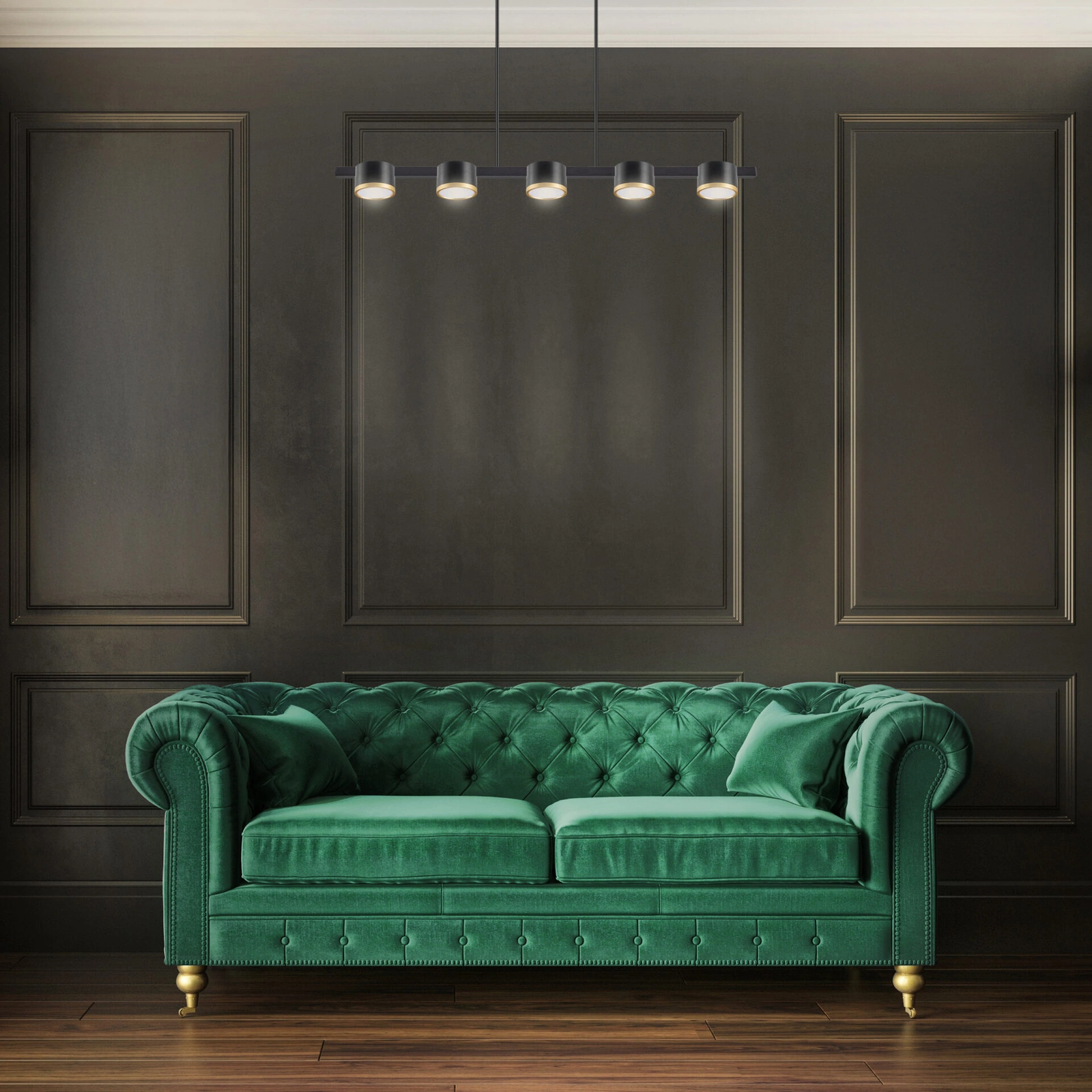 Entdecken Sie die einzigartige MIRELLA Pendelleuchte von Sanico Goldlux, die jeden Liebhaber moderner Inneneinrichtungen begeistern wird. Diese elegante Leuchte verbindet schlichte Form und Minimalismus mit einem Hauch von Luxus dank der dezent eingearbeiteten goldenen Details vor einem Hintergrund aus schwarzem Aluminium. Fünf austauschbare Lichtpunkte mit einem GX53-Griff ermöglichen es Ihnen, die Intensität und Farbe des Lichts einzustellen, um die perfekte Atmosphäre in Ihrem Interieur zu schaffen. MIRELLA ist nicht nur eine praktische Beleuchtung, sondern auch ein stilvoller dekorativer Akzent, der alle europäischen Normen und Qualitätsstandards erfüllt.