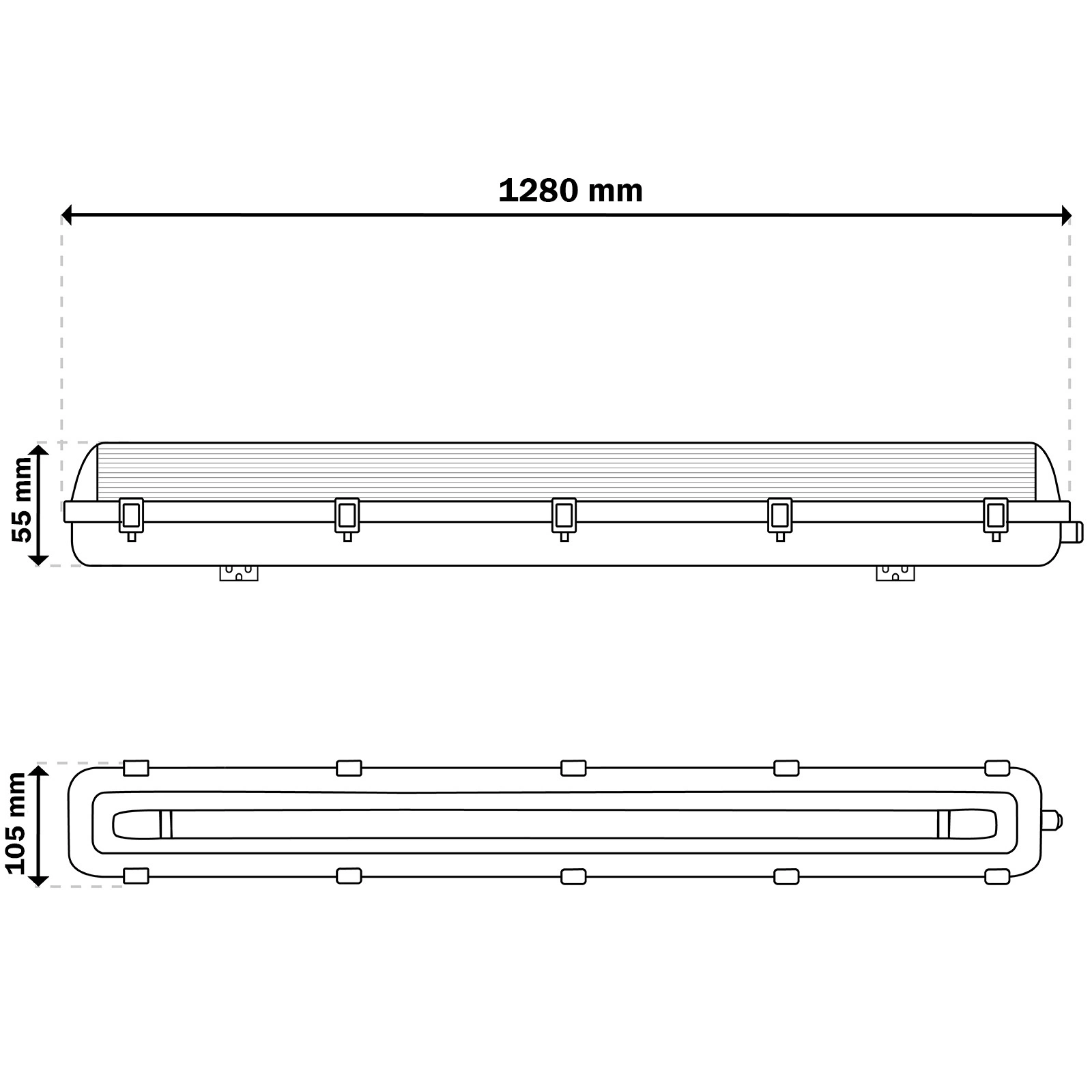 Die hermetische Leuchte T8 LED 2x120 cm ist eine vielseitige und langlebige Lösung für die Beleuchtung von Räumen, die eine erhöhte Widerstandsfähigkeit erfordern. Dank der Dichtheit IP65 schützt das Gehäuse das Innere vor Staub und Feuchtigkeit und ist somit ideal für Garagen, Keller, Autowaschanlagen, Heizungsräume und Produktionshallen. Das Design ermöglicht eine schnelle Installation an der Decke oder an der Wand, und durch die Möglichkeit, jede beliebige 120 cm lange LED-T8-Leuchtstofflampe zu verwenden, können Sie die Farbe und die Lichtleistung an Ihre Bedürfnisse anpassen. Sie ist eine wirtschaftliche und zuverlässige Wahl für alle, die auf praktische Beleuchtung angewiesen sind.