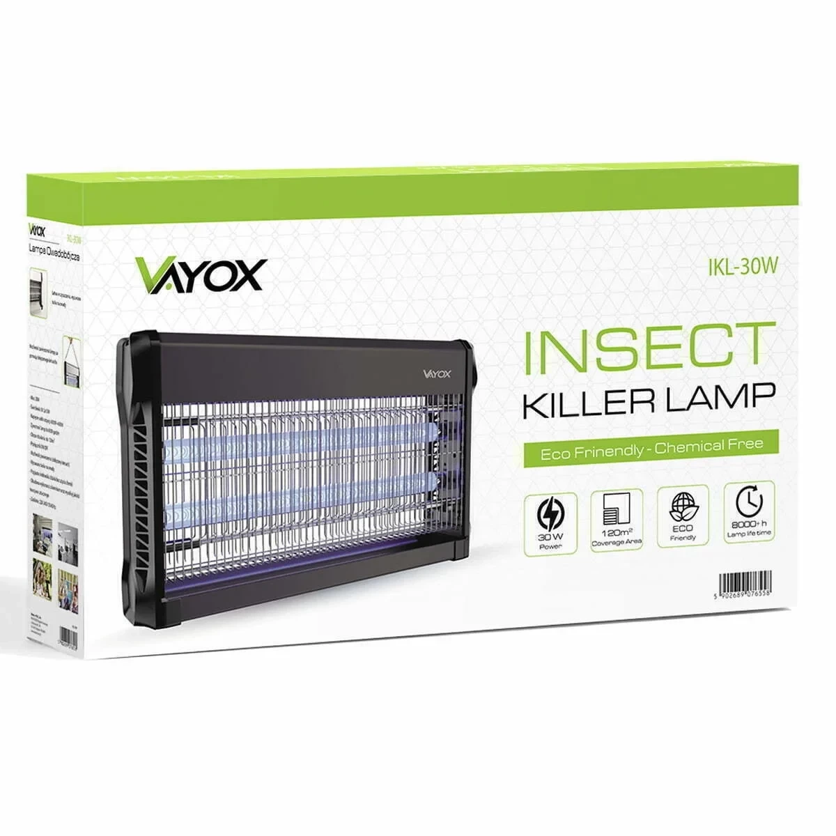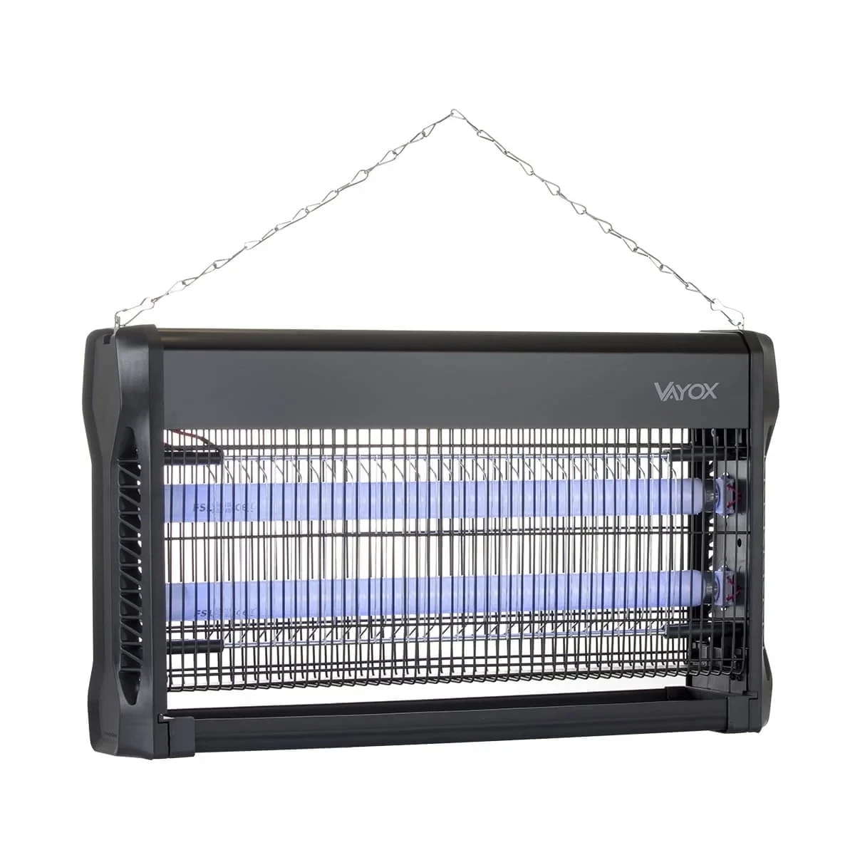 Die elektrische Insektenfalle von VAYOX wurde entwickelt, um Fliegen, Mücken und andere Insekten auf einer Fläche von bis zu 120 m2 wirksam zu bekämpfen. Mit ihrem eleganten schwarzen Gehäuse fügt sie sich in jede Umgebung ein und bietet sowohl im Innen- als auch im Außenbereich wirksamen Schutz.
