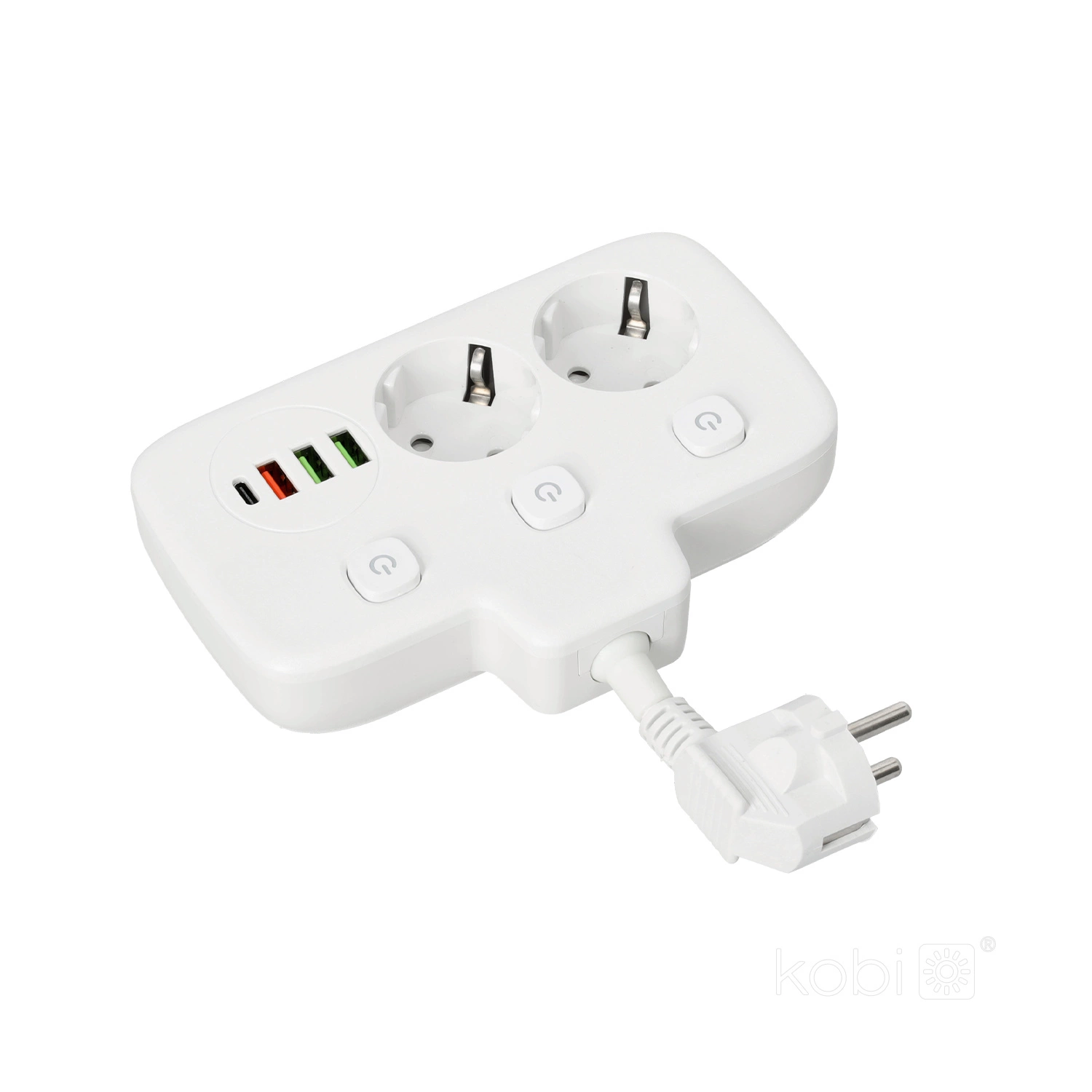 KOBI LINEA FL 2x230V Verteiler mit Erde, 3 Schalter und 4xUSB Weiß