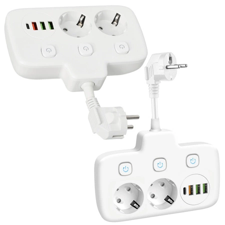 Der KOBI LINEA FL Verteiler ist eine praktische und funktionelle Lösung für den Hausgebrauch, ausgestattet mit einem Schuko-Erdungsanschluss und drei separaten Schaltern. Er verfügt über zwei 230-Volt-Steckdosen und vier USB-Anschlüsse (3 USB-A-Anschlüsse und 1 USB-C-Anschluss), so dass verschiedene elektrische Geräte angeschlossen und gleichzeitig mobile Geräte aufgeladen werden können. Mit drei separaten Schaltern kann die Stromversorgung der einzelnen Steckdosen individuell gesteuert werden, was mehr Flexibilität und Energieeinsparungen ermöglicht.Der Splitter unterstützt eine maximale Stromstärke von 10A und eine Last von bis zu 2500W, was ihn ideal für den täglichen Gebrauch zu Hause oder im Büro macht. Das Produkt ist mit einem H05VV-F 3x1,5 mm Kabel ausgestattet, das eine lange Lebensdauer und eine sichere Verwendung gewährleistet. Eingebaute Strompfadabdeckungen bieten zusätzlichen Schutz vor dem Zugriff von Kindern auf die Steckdosen. Dieser kompakte und leichte Splitter ist perfekt für jedes Haus.