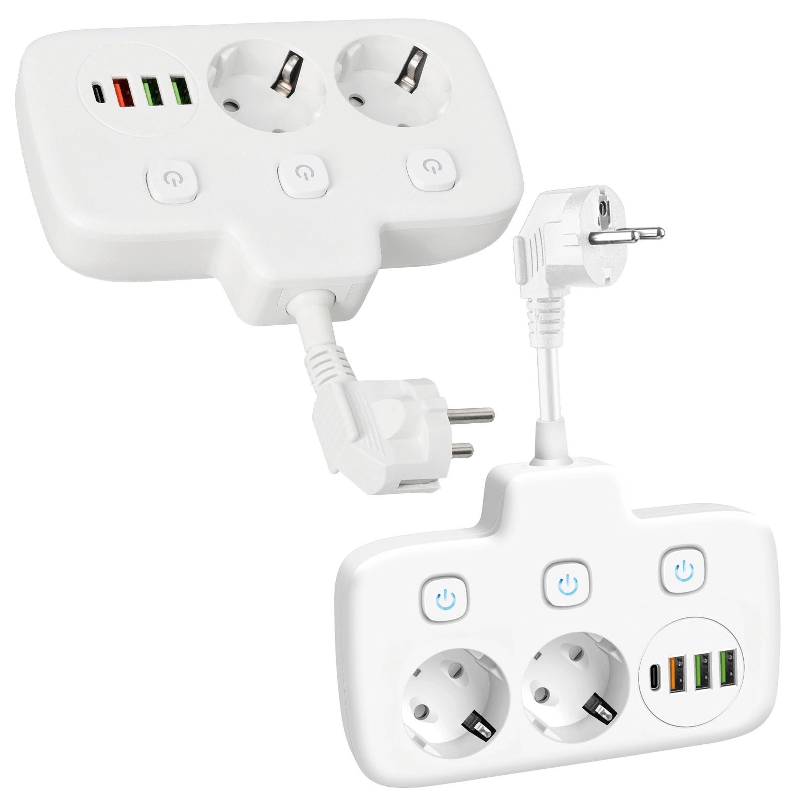 - Drei Schalter ermöglichen die individuelle Steuerung der Stromversorgung für jede Steckdose und erhöhen so die Flexibilität