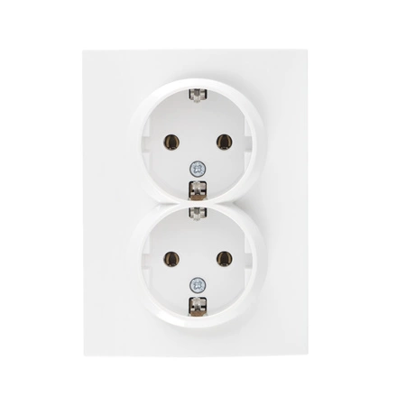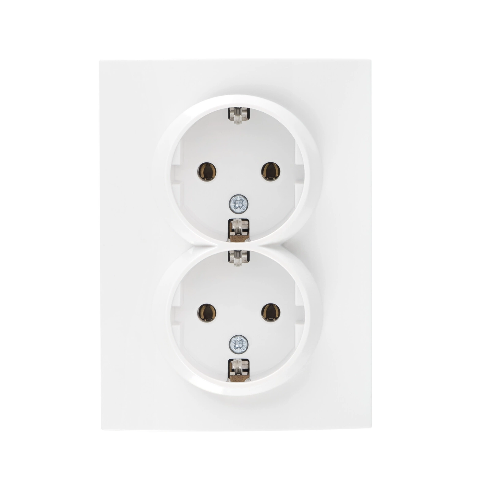 Funktionale Doppelsteckdose LOGI komplett in weiß, nach europäischer Schuko-Norm. Ermöglicht den sicheren Anschluss von Geräten mit einer maximalen Stromstärke von 16A.