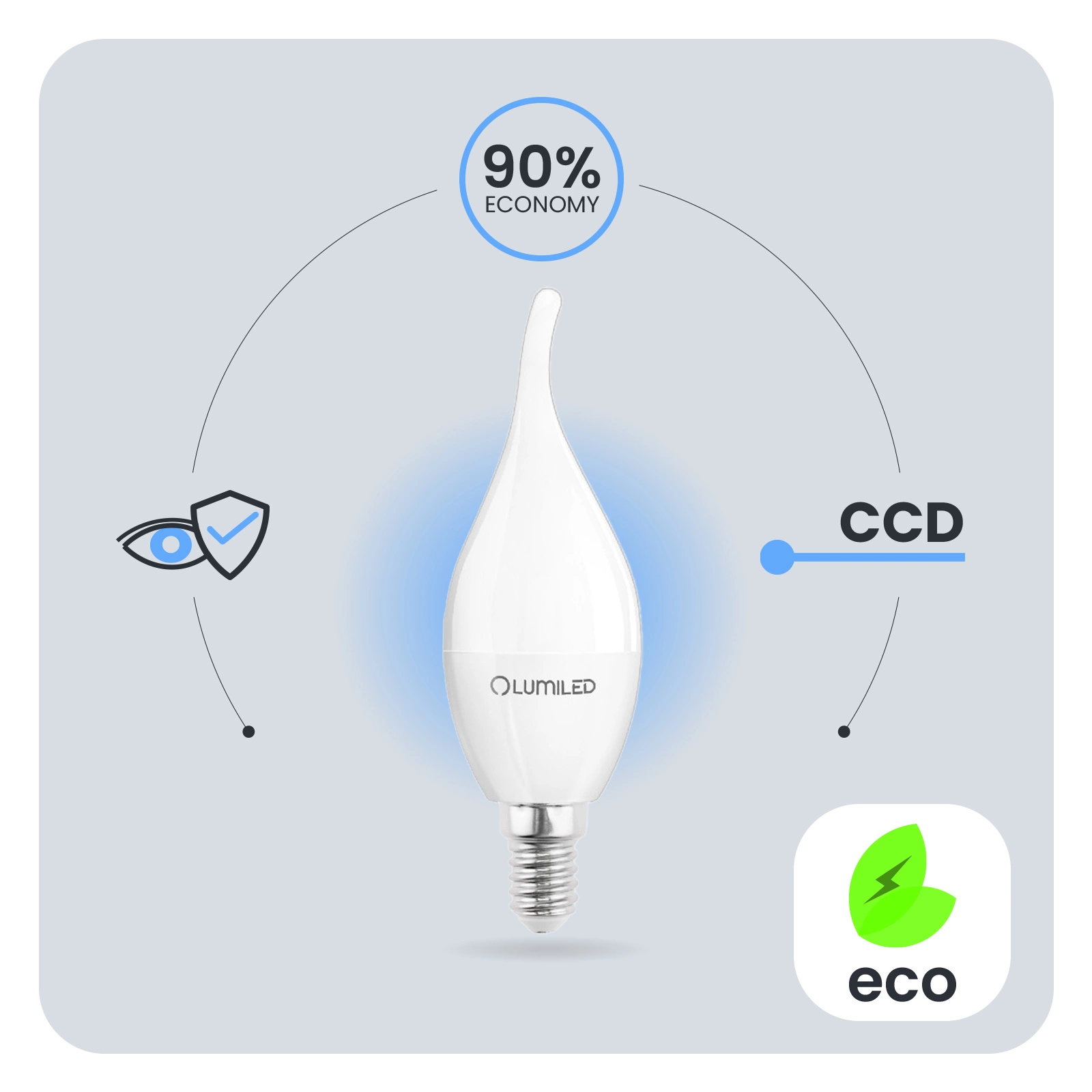 Der in der LED-Glühbirne verwendete CCD-Inverter macht die Glühbirne widerstandsfähig gegen Einbrüche und Spitzen in der Netzspannung. Das Licht flackert und zittert nicht. Der CCD-Konverter sorgt dafür, dass die Glühbirne über einen langen Zeitraum hinweg einwandfrei funktioniert. Bei der Entwicklung der LUMILED-Lampen wurde an den Benutzer gedacht. Eine schlechte Beleuchtungsqualität kann zur Ermüdung der Augen führen. Deshalb verfügen unsere Lampen über die technische Entwicklung Eye Safe, um in jedem Raum eine angenehme und augenfreundliche Beleuchtung zu gewährleisten.