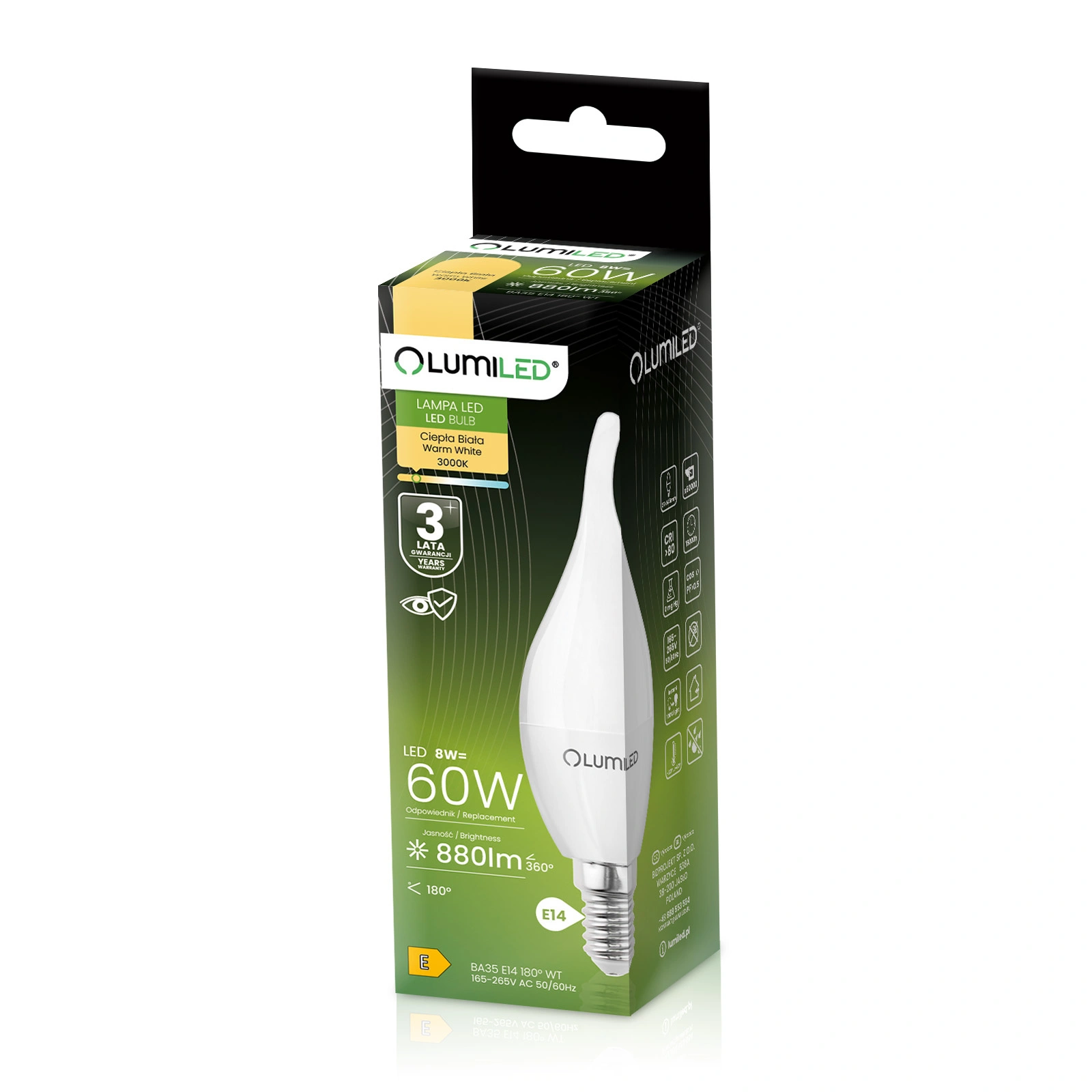 Die LED-Glühbirne der renommierten Marke LUMILED mit E14-Sockel und 8W ist ein hervorragender Ersatz für herkömmliche 60W-Glühbirnen und bietet Energieeinsparungen und eine längere Lebensdauer. Sie gibt Licht mit einem Lichtstrom von 806 Lumen und einer warmen Farbe von 3000K ab und ist damit ideal für die Innenbeleuchtung, wo eine weiche, angenehme Lichtfarbe gewünscht wird. Der Abstrahlwinkel von 180° ermöglicht eine breite Lichtstreuung, die den Raum effektiv ausleuchtet. Dank ihrer hochwertigen Verarbeitung hat sie eine Lebensdauer von bis zu 15.000 Stunden, was einer langjährigen Nutzung entspricht. Außerdem arbeitet sie in einem weiten Spannungsbereich von 165-265 V und ist für den Einsatz bei Umgebungstemperaturen von -20°C bis +40°C geeignet. Eine ideale Wahl für alle, die Wert auf Energieeinsparung und Umweltschutz legen.