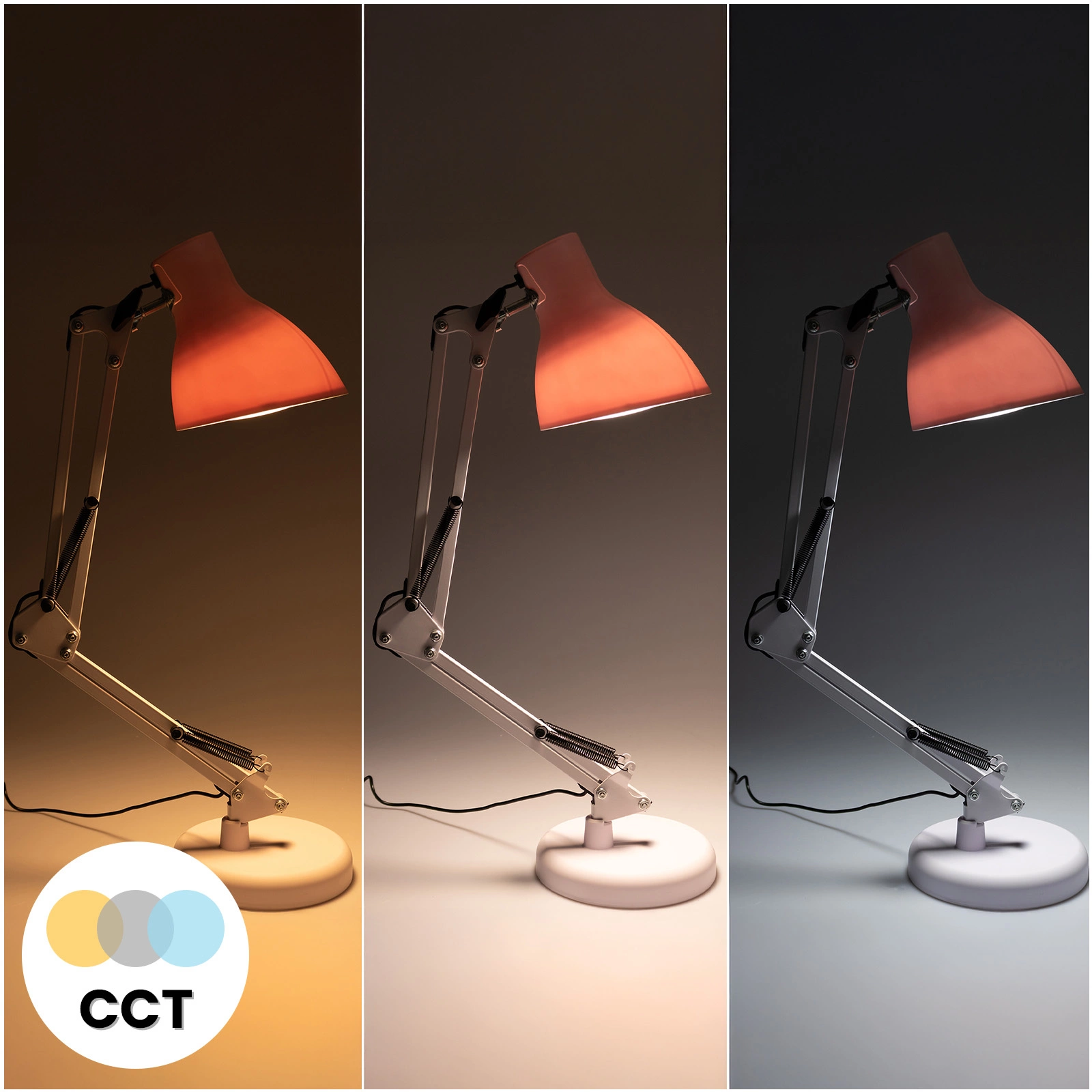 Marti Schreibtischlampe marken Lumiled kombiniert modernen Stil mit klassischer Ergonomie. Die Lampe kann verstellt werden, so dass wir unseren Arbeitsbereich am Schreibtisch besser ausleuchten können. Diese Lampe ist das ideale Produkt für alle, die ihre Wohnung mit einem einzigartigen und unkonventionellen Accessoire schmücken möchten, das das originelle und avantgardistische Design der Einrichtung unterstreicht. Die Lampe hat cCT-Funktion die es ermöglicht, mit Hilfe der der schaltermontierten Fernsteuerung, die Farbtemperatur kann von kalt über neutral bis warm frei eingestellt werden, und auch die Helligkeit des Lichts lässt sich anpassen zum Einstellen der Helligkeit des Lichts - dimmen.
