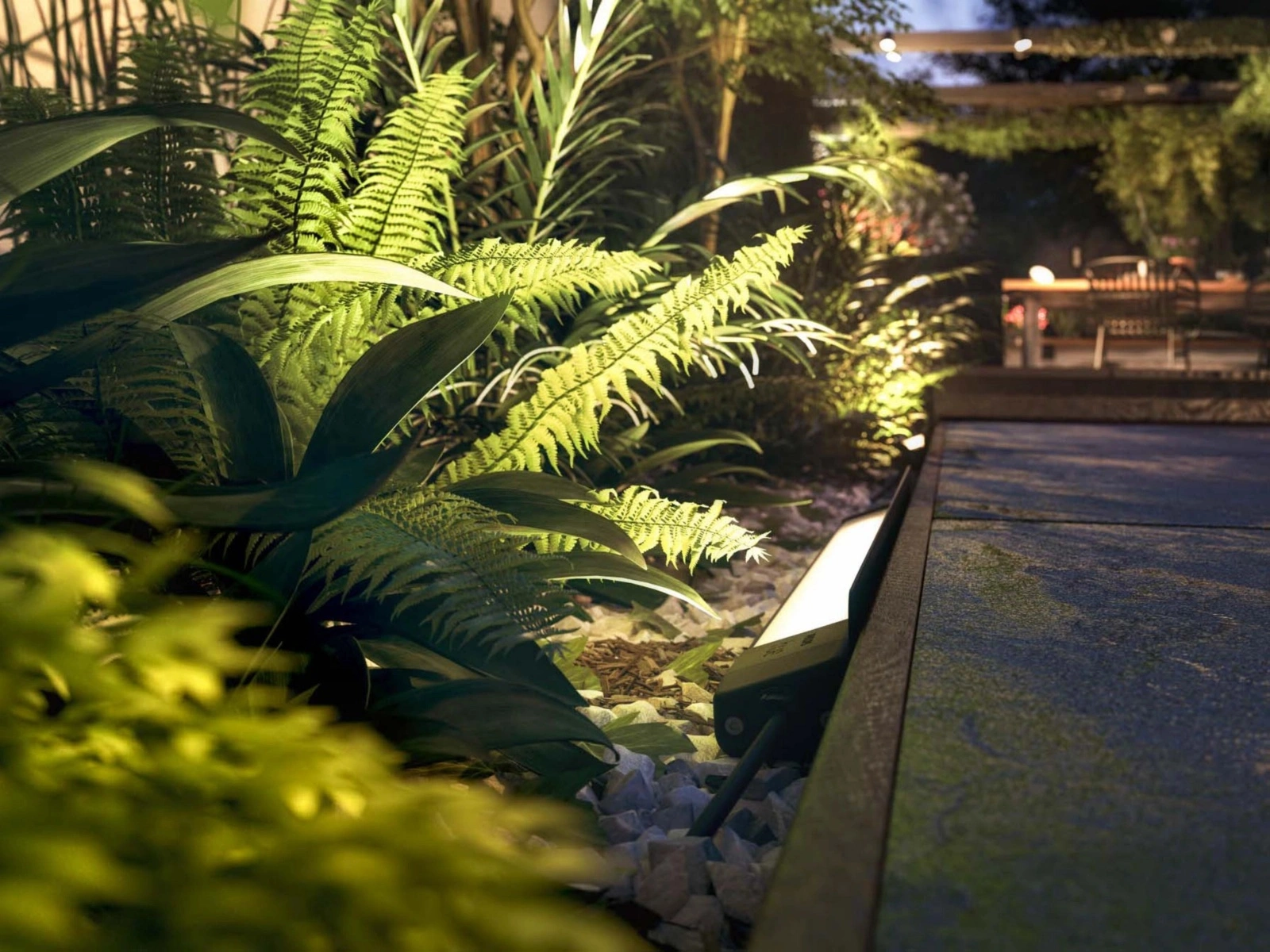 Mit der Philips Hue Außenbeleuchtung können Sie mit 16 Millionen Farben und allen Schattierungen von weißem Licht grenzenlos magische Atmosphären schaffen. Beleuchten Sie Gartenmöbel, Bäume oder Wege, um Ihren Raum hervorzuheben. Speichern Sie mit der Philips Hue App Ihre bevorzugten Beleuchtungseinstellungen und rufen Sie sie jederzeit mit einem einzigen Klick ab.