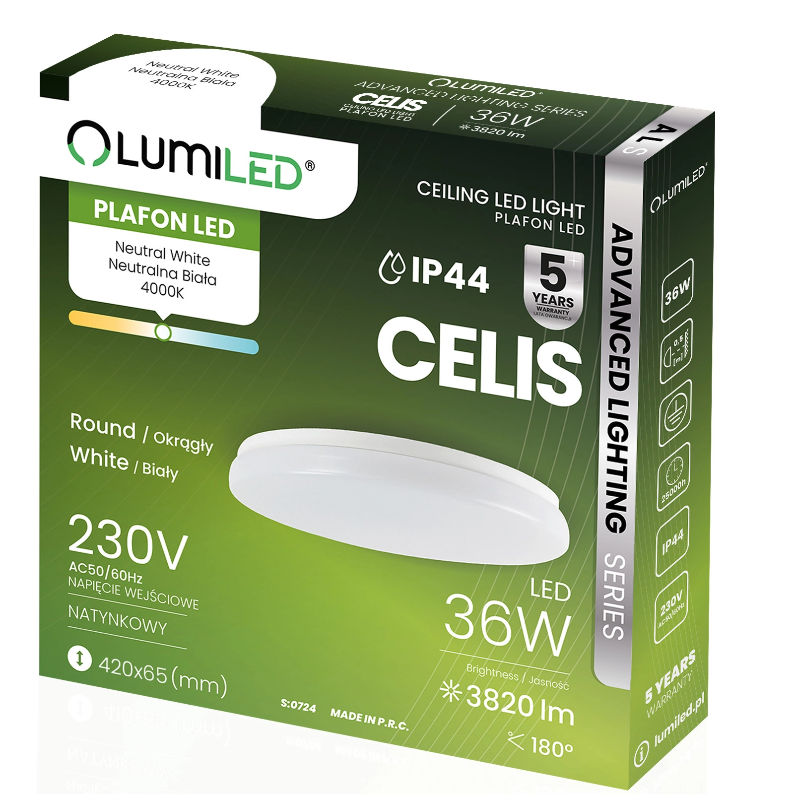 Energiesparender LED-Plafond der Advanced Lighting Serie der renommierten und anerkannten Lichtmarke LUMILED mit 36W, neutrale Lichtfarbe (4000K) ist eine Beleuchtung, die die Möglichkeit bietet, Energie zu sparen, indem sie ein dezentes, für das Auge angenehmes Licht ausstrahlt. Die Lampe erzeugt einen Lichtstrom in Höhe von 3820lm. Eine ausgezeichnete Wahl für verschiedene Räume in Ihrem Haus.