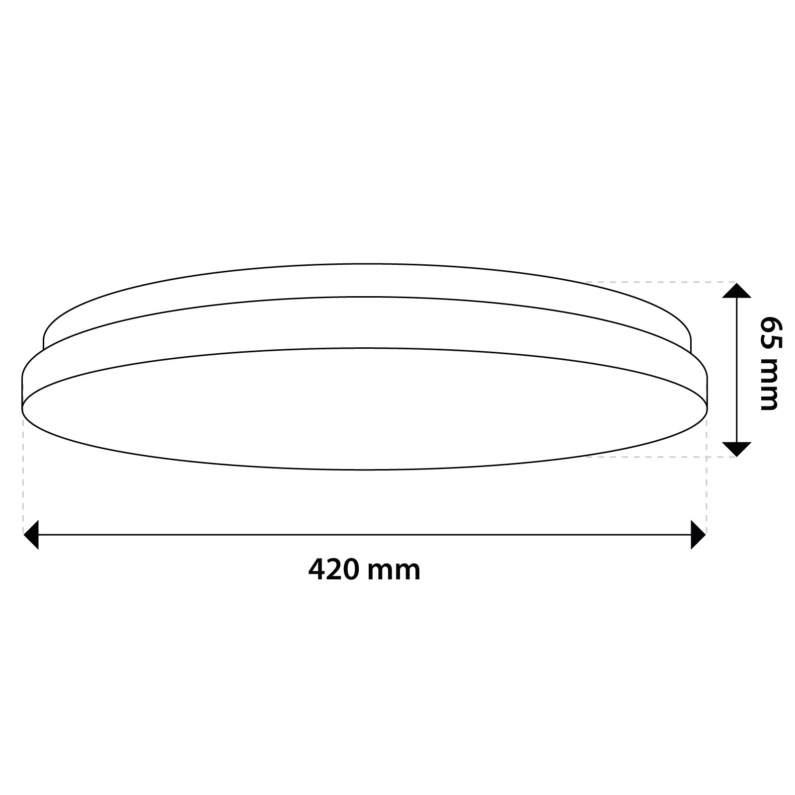Der LED-Plafond mit 41 cm Durchmesser ist eine moderne und funktionelle Beleuchtungslösung, die Energieeffizienz mit einem ästhetischen Design verbindet. Die runde Form und der milchige Schirm sorgen dafür, dass das Licht gleichmäßig im Raum verteilt wird, was eine angenehme und gemütliche Atmosphäre im Schlafzimmer, im Wohnzimmer oder in anderen Räumen schafft. Lampe mit 36W, betrieben mit LEDs, bietet außergewöhnliche Helligkeit und angemessene Sichtbarkeit und Komfort in jedem Innenraum. Dank der modernen LED-Technologie zeichnet sich der Plafond durch eine hohe Energieeffizienz aus, d.h. er verbraucht deutlich weniger Energie als herkömmliche Leuchtmittel. Dies führt zu niedrigeren Stromrechnungen und macht es zu einer wirtschaftlichen und umweltfreundlichen Lösung.