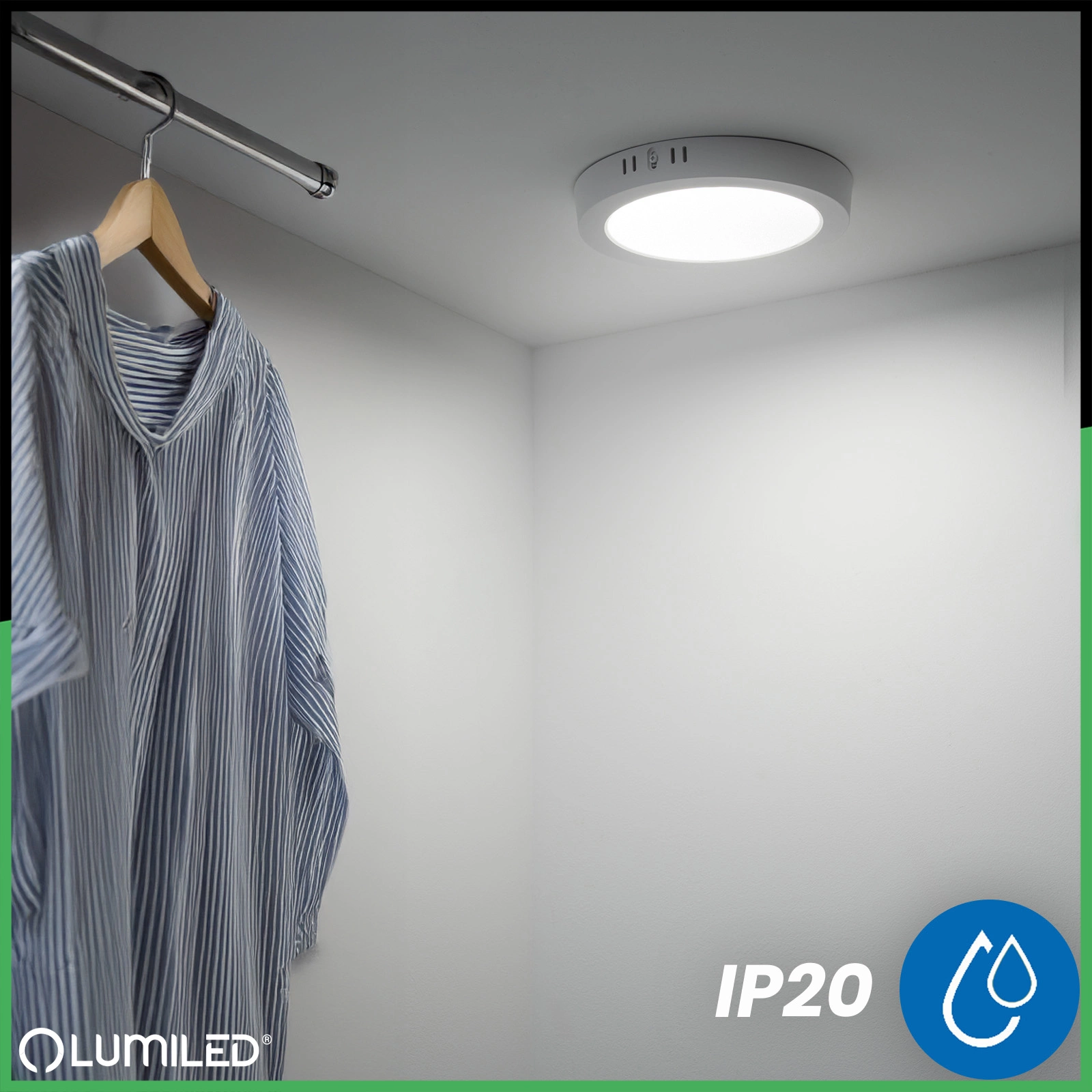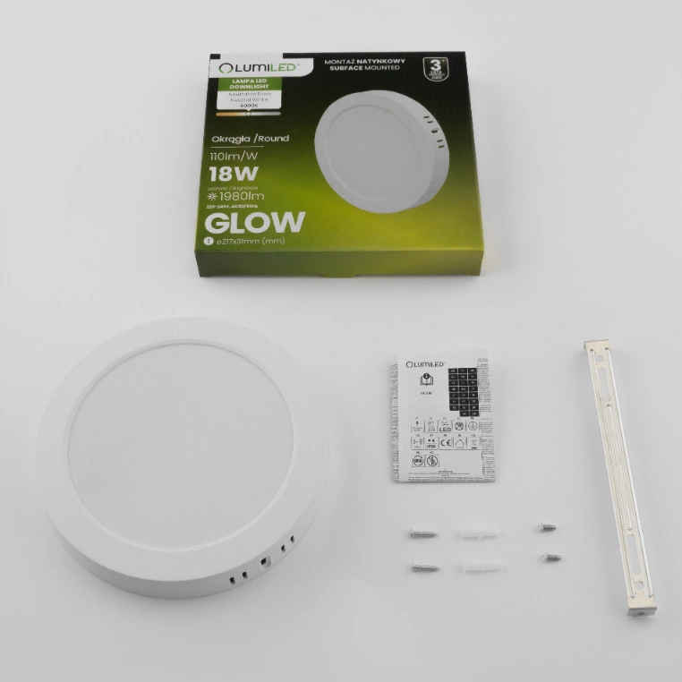 Die 18W LED-Anbauleuchte aus der GLOW-Serie von Lumiled ist die ideale Kombination aus Komfort, Ästhetik und Wirtschaftlichkeit. Das neutrale 4000K-Licht sorgt für Komfort bei der Arbeit und im Alltag, und die Effizienz von 110 lm/W ermöglicht eine helle Ausleuchtung bei geringem Energieverbrauch. Die kompakte Form passt in jedes Interieur, und durch die einfache Anbaumontage sind keine Umbauten erforderlich. Sie ist eine zuverlässige Lösung, die jahrelang hält und wartungsfrei ist.