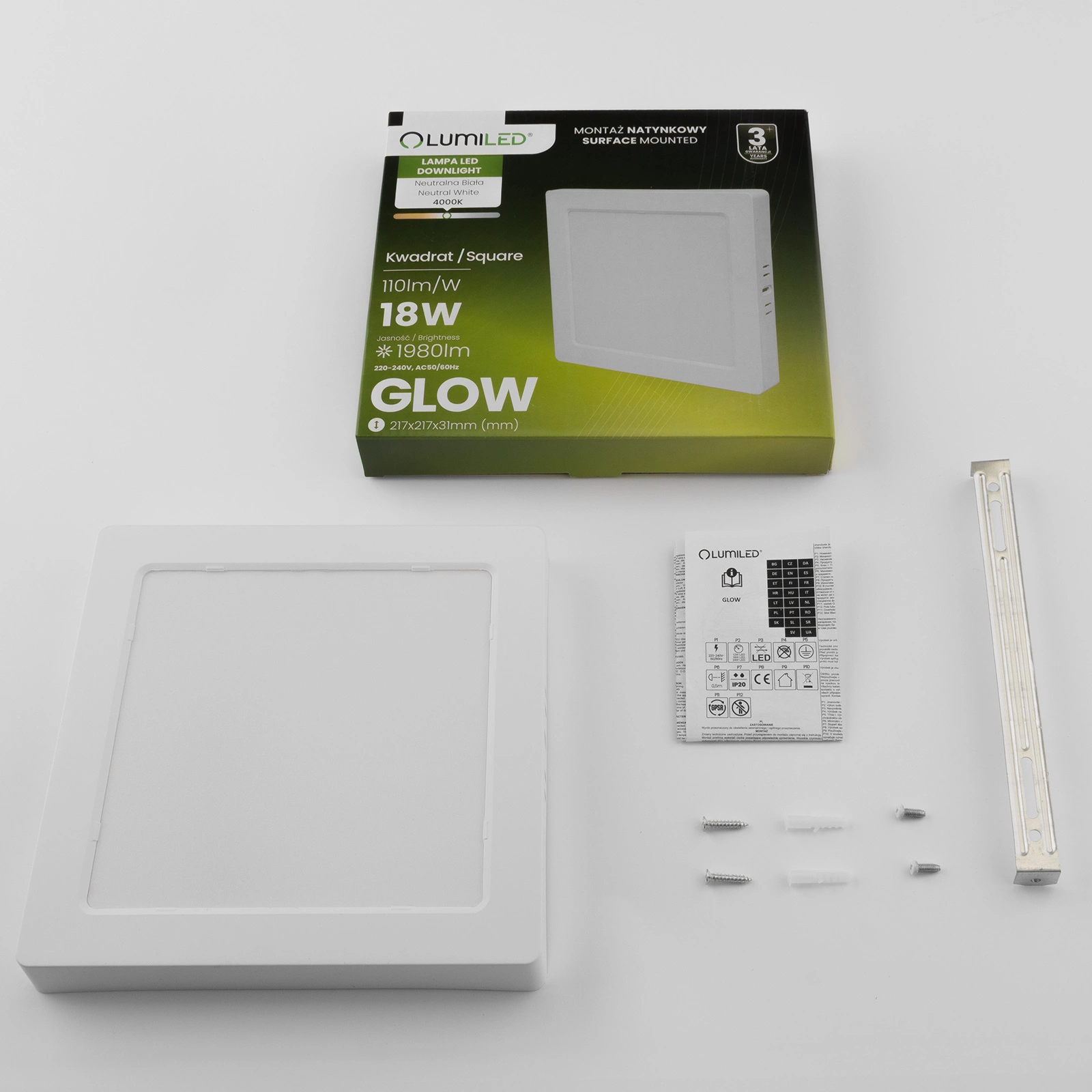 Die 18W LED-Anbauleuchte aus der GLOW-Serie von Lumiled ist die ideale Kombination aus Komfort, Ästhetik und Wirtschaftlichkeit. Das neutrale 4000K-Licht sorgt für Komfort bei der Arbeit und im Alltag, und die Effizienz von 110 lm/W ermöglicht eine helle Ausleuchtung bei geringem Energieverbrauch. Die kompakte Form passt in jedes Interieur, und durch die einfache Anbaumontage sind keine Umbauten erforderlich. Sie ist eine zuverlässige Lösung, die jahrelang hält und wartungsfrei ist.