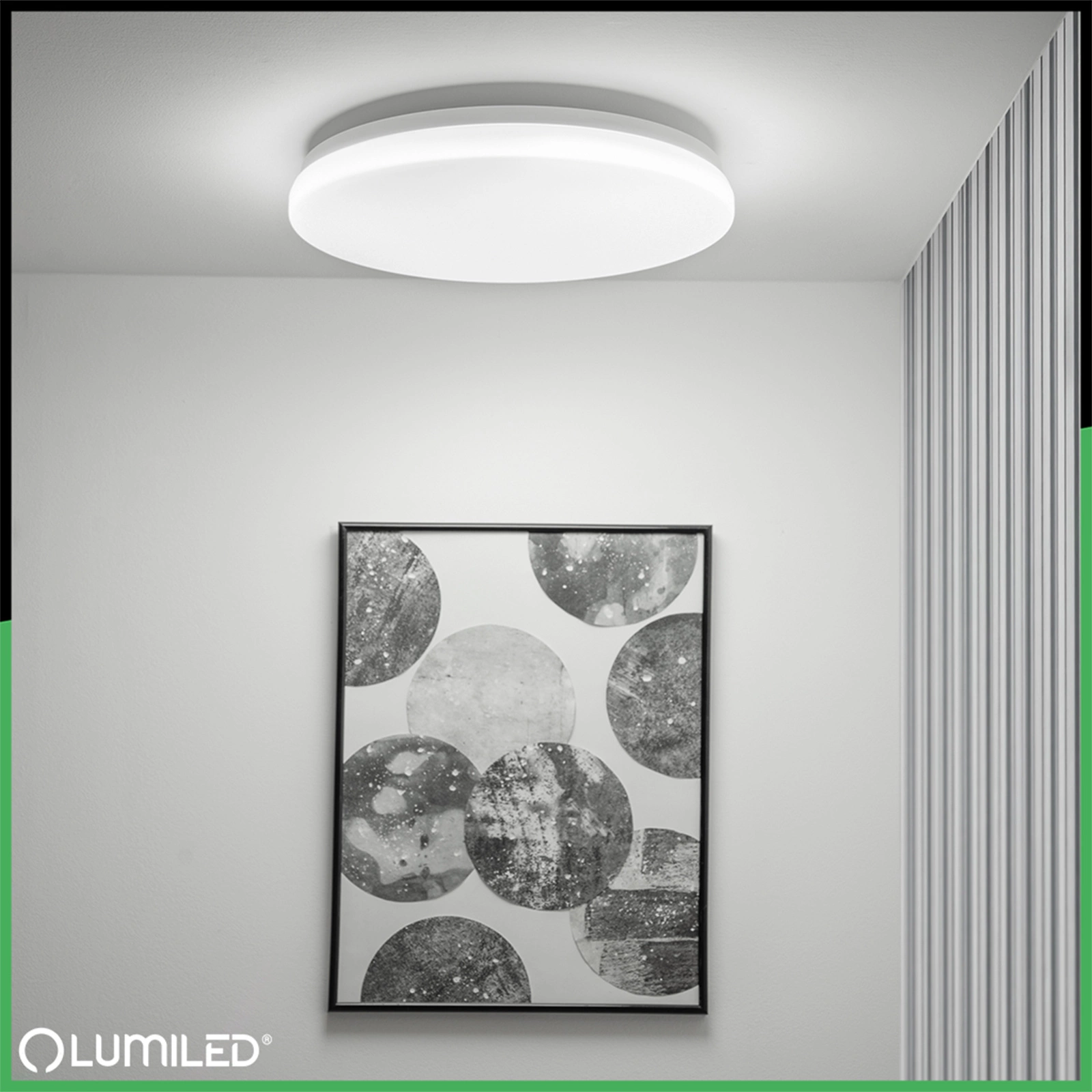 Energiesparender LED-Plafond der Advanced Lighting Serie der renommierten und anerkannten Lichtmarke LUMILED mit 24W, neutrale Lichtfarbe (4000K) ist eine Beleuchtung, die die Möglichkeit bietet, Energie zu sparen, indem sie ein dezentes, für das Auge angenehmes Licht ausstrahlt. Die Lampe erzeugt einen Lichtstrom in Höhe von 2500lm. Eine ausgezeichnete Wahl für verschiedene Räume in Ihrem Haus.