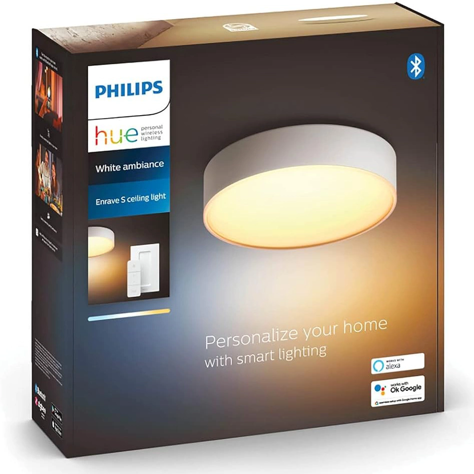 Deckenleuchte HUE ENRAVE LED Plafond in der Beleuchtungsindustrie bekannt und respektiert Philips. Leuchte mit einer integrierten LED-Lichtquelle von 9,5W und sehr effiziente Lichtleistung - 1220lm, strahlt angenehmes und entspannendes Licht z einstellbare Farbtemperatur die von angenehm warm über neutral bis kalt reichen, mit denen wir für jede Gelegenheit eine passende Stimmung schaffen können. ENRAVE-Deckenleuchte kann unabhängig oder als Teil eines intelligenten Beleuchtungssystems durch Verbindung mit der Hue Bridge funktionieren. Einfaches Ein- und Ausschalten der Beleuchtung, Dimmen, Aufhellen und Auswählen verschiedener Lichtszenen.