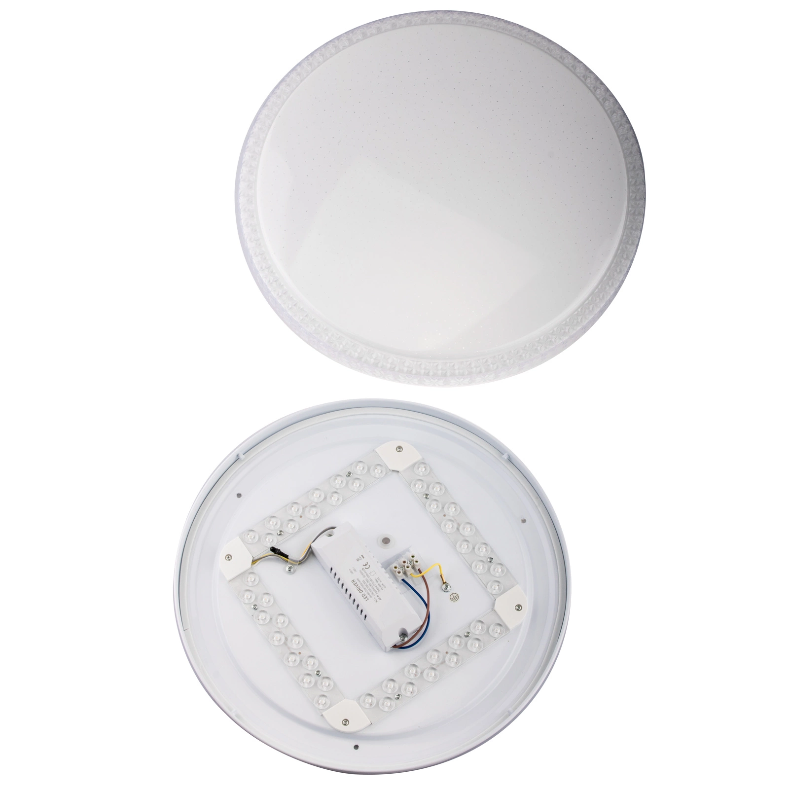 Der LED-Plafond mit einem Durchmesser von 40 cm ist ein originelles und modernes Beleuchtungsdesign, das mit Blick auf Energieeffizienz und Ästhetik entwickelt wurde. Die runde Leuchte hat einen milchigen Schirm, dank dem sich das Licht gleichmäßig im Raum verteilt. Der milchige Schirm beeinflusst das Aussehen und die Verteilung des Lichts. Darüber hinaus kann er dazu beitragen, eine gemütliche Atmosphäre im Schlafzimmer, im Wohnzimmer oder in anderen Räumen zu schaffen.