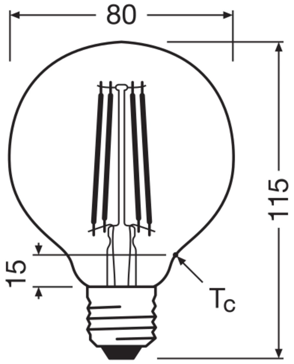 Beleuchten Sie Ihre Innenräume mit außergewöhnlichem Design und Effizienz mit der LED Decorative G80 Ball E27 Glühbirne von Osram. Diese Glühbirne ist Teil der Vintage 1906 Serie, was bedeutet, dass ihr Retro-Stil sowohl in moderne als auch in klassische Innenräume perfekt passt. Mit einer Leistung von 7,2 W entspricht sie einer herkömmlichen 60-W-Glühlampe und erzeugt einen Lichtstrom von 806 lm mit einer Lichtausbeute von 112 lm/W. Die warmweiße Lichtfarbe von 2400K schafft eine gemütliche Atmosphäre, und die dimmbare Option ermöglicht es Ihnen, die Lichtintensität an Ihre Bedürfnisse anzupassen.