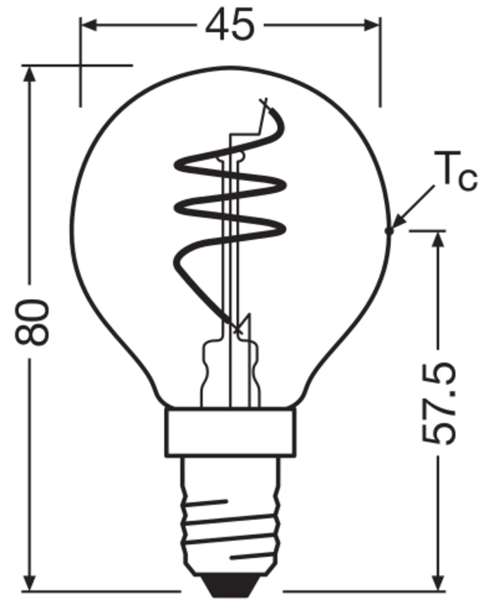 LED Dekorative Glühbirne P45 Sphere E14 4.9W = 40W 470lm 2200K Warm CRI90 300° Amber Filament Dimmbar Vintage 1906 Osram