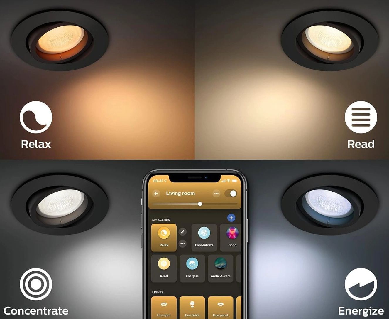 Erhalten Sie die volle Kontrolle über Ihre Beleuchtung mit Sprachbefehlen. Philips Hue funktioniert mit Amazon Alexa und Google Assistant - verbinden Sie Ihre Lampen einfach mit einem kompatiblen Google Nest- oder Amazon Echo-Gerät. Mit einem einzigen Befehl können Sie die Beleuchtung in einem ganzen Raum einschalten oder eine Stimmung in einer ausgewählten Lampe erzeugen.