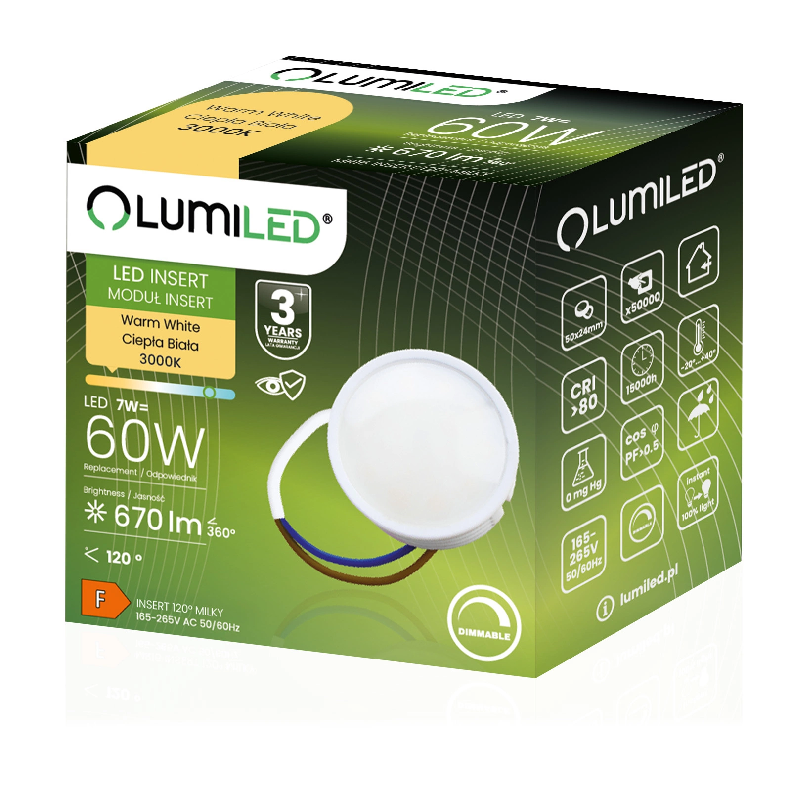 Die 7W-LED-Glühbirne der renommierten Marke LUMILED ist ein hervorragender Ersatz für herkömmliche 60W-Glühbirnen und bietet Energieeinsparungen und eine längere Lebensdauer. Sie gibt Licht mit einem Lichtstrom von 670 Lumen und einer warmen Farbe von 3000K ab und ist damit ideal für die Innenbeleuchtung, wo eine weiche, angenehme Lichtfarbe gewünscht wird. Der Ausstrahlungswinkel von 120° ermöglicht eine breite Lichtstreuung und leuchtet den Raum effektiv aus. Dank ihrer hochwertigen Verarbeitung hat sie eine Lebensdauer von bis zu 15.000 Stunden, was einer langjährigen Nutzung entspricht. Außerdem arbeitet sie in einem weiten Spannungsbereich von 165-265 V und ist für den Einsatz bei Umgebungstemperaturen von -20°C bis +40°C geeignet. Eine ideale Wahl für alle, die Wert auf Energieeinsparung und Umweltschutz legen.