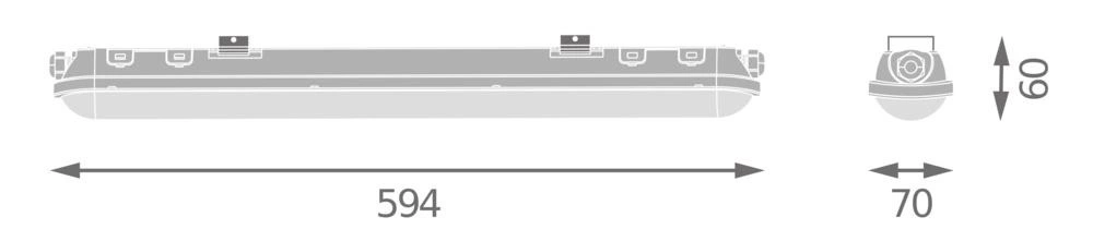 Die kompakte graue Polycarbonatkonstruktion ermöglicht eine einfache Oberflächenmontage. Die Lampe kann bei Temperaturen von -20°C bis +40°C betrieben werden und verfügt über eine fest integrierte LED-Quelle, die eine Lebensdauer von bis zu 50000 Stunden bietet. Ihr hoher Farbwiedergabeindex(Ra 80) und die geringe Anlaufzeit von 0,5 s machen sie zur idealen Wahl für Industrie- und Lagerbeleuchtung und andere Bereiche, die eine zuverlässige Beleuchtung erfordern. Die vollständige CE-Zertifizierung bestätigt die hohe Qualität der Herstellung.